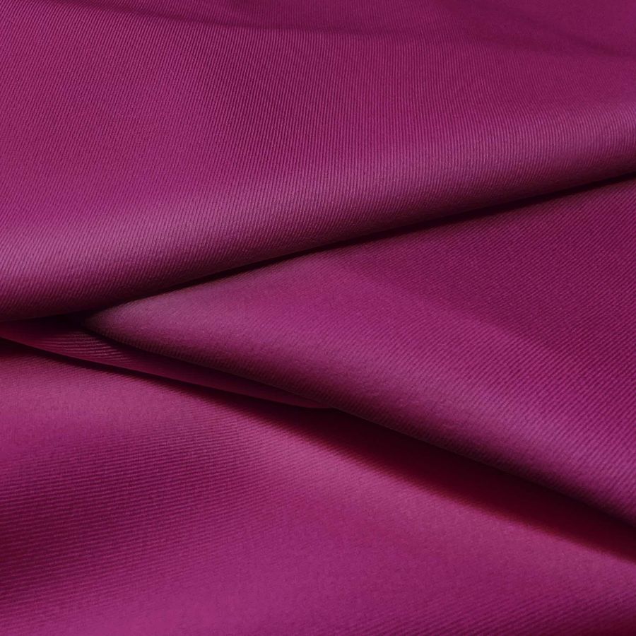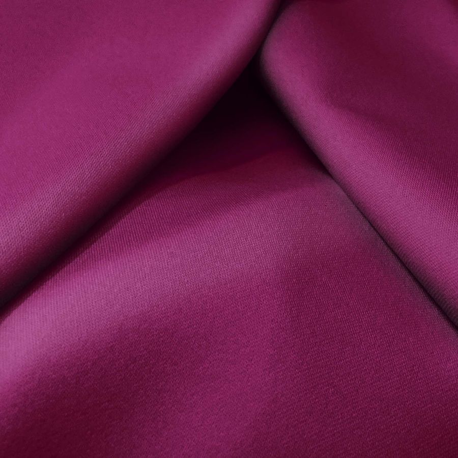 La tela base de la Sarga Bielástica - Lisboa es una sarga compuesta mayoritariamente por poliéster con un 3% de elastano, que le proporciona su elasticidad. Con un gramaje de 209 gr/m2 y un ancho de 150 cm, esta tela es ideal para la confección de prendas como pantalones, faldas, jeans y shorts, así como para la creación de complementos y accesorios de moda. Su color liso impreso es un morado intenso, también conocido como Purpura Imperial, con un CMYK de 43 100 32 49, lo que indica que está impreso con una gran cantidad de magenta y cian, seguido de una proporción menor de amarillo y negro. Este color se puede combinar con otros tonos morados y neutros para crear un look moderno y sofisticado.