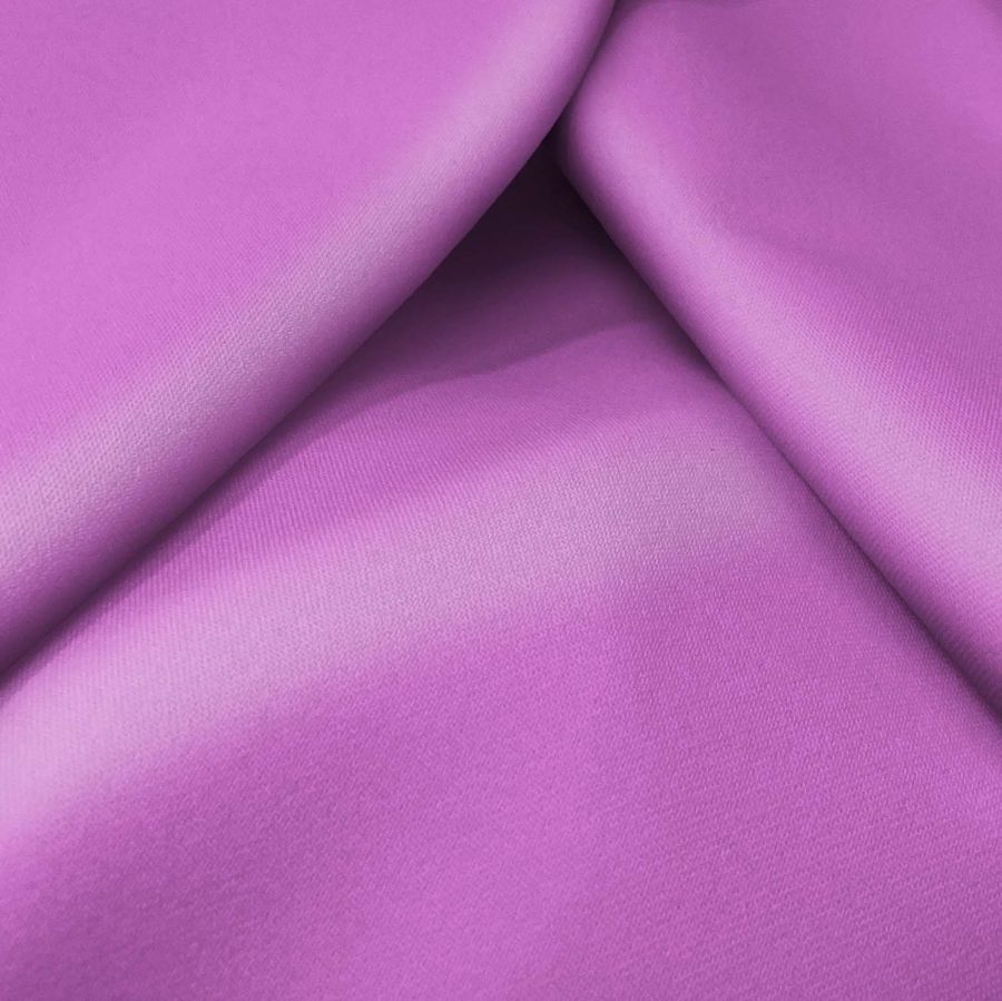 La tela base, Sarga Bielástica - Lisboa, tiene una composición de 97% POLIÉSTER y 3% ELASTANO con un peso de 209 gr/m2 y un ancho de 150 cm. El color impreso en la tela es un Morado Lila Orquídea, que tiene un CMYK de 30 63 0 0. Este color evoca la delicadeza, la nostalgia y la sutileza, y combina especialmente bien con tonalidades azules, grises y rosa palo. Cabe destacar que el tejido está impreso por una sola cara mediante impresión digital textil.