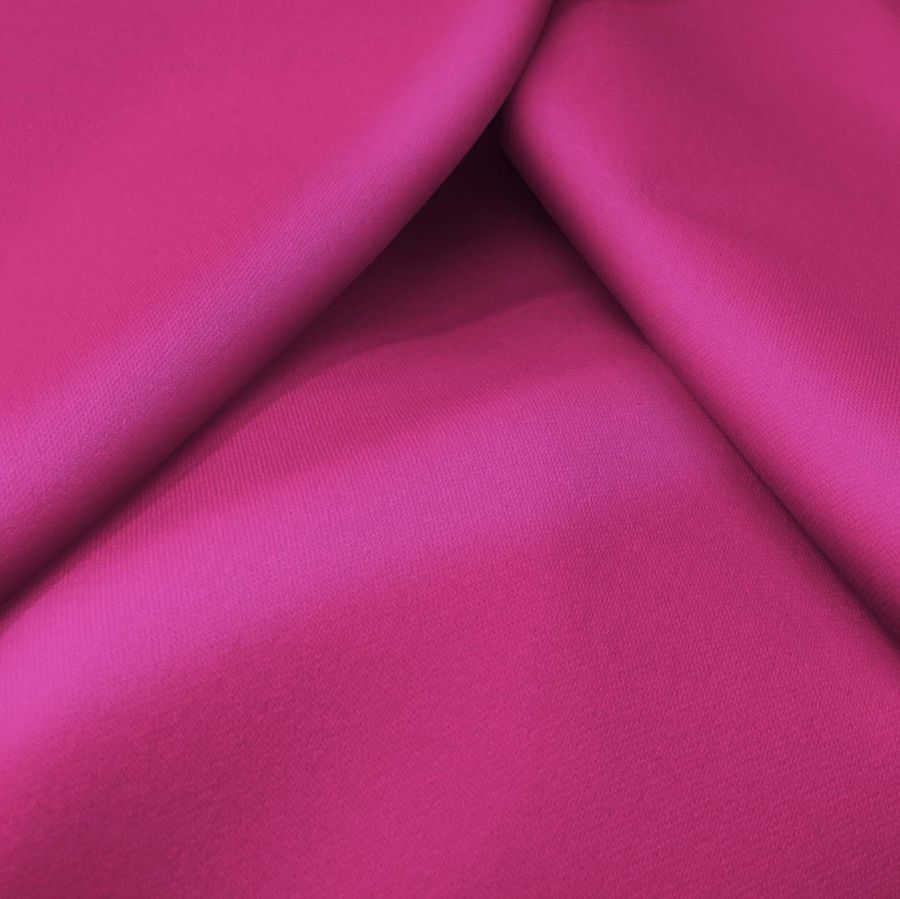 La tela base, Sarga Bielástica - Lisboa, está compuesta por un 97% de poliéster y un 3% de elastano, con un gramaje de 209 gr/m2 y un ancho de 150 cm. El color liso impreso en la tela es Morado/Magenta con un CMYK de 15 90 21 2. Este color refleja una paleta intensa y vibrante que combina perfectamente con tonos neutros y cálidos, como gris, blanco y beige. Es un color que simboliza la creatividad, la pasión y la alegría.