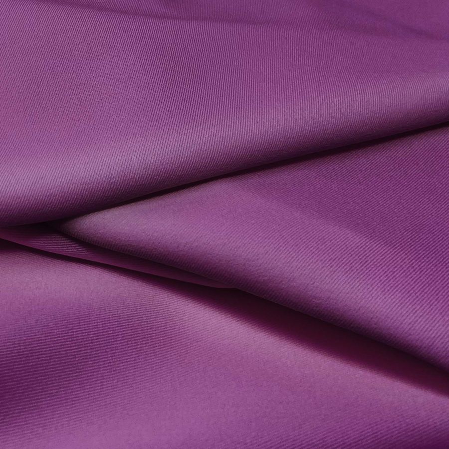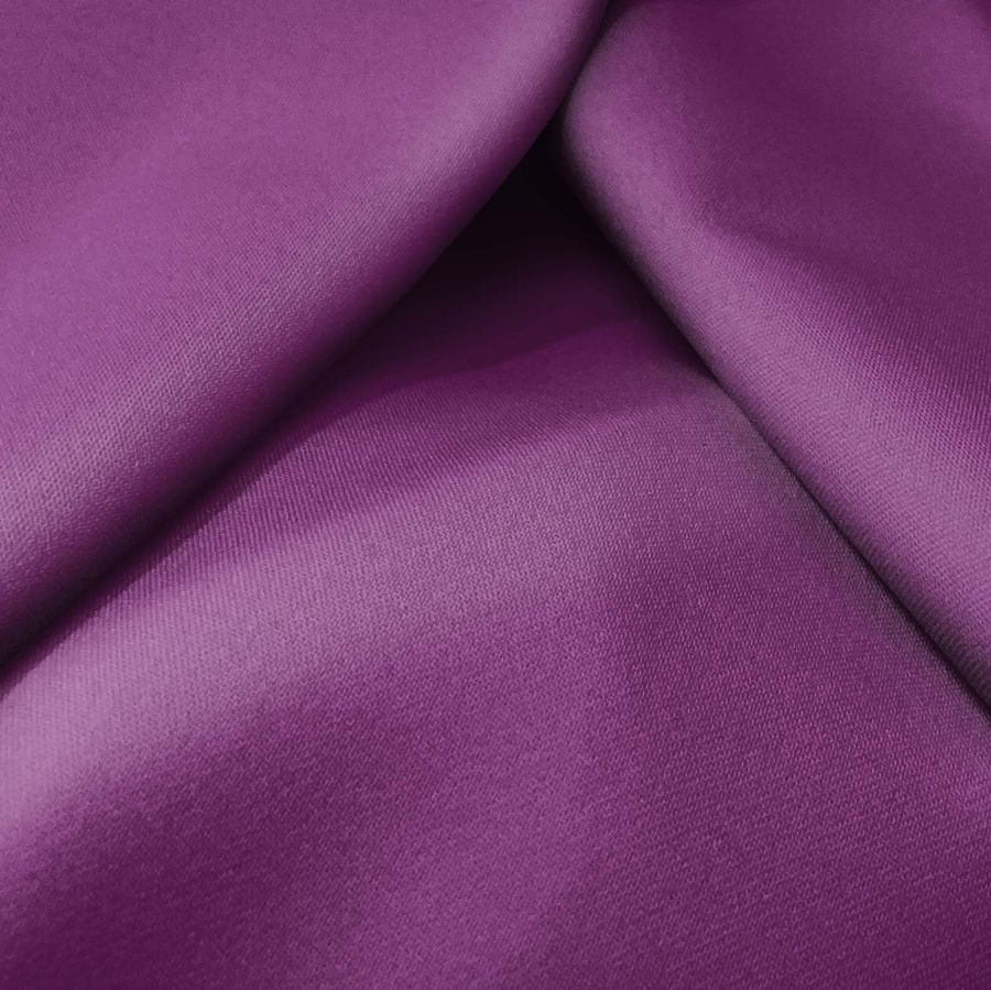 La tela base de este tejido es la Sarga Bielástica - Lisboa, compuesta por un 97% de poliéster y un 3% de elastano con un gramaje de 209 gr/m2 y un ancho de 150 cm. El color liso impreso es un Morado Palatinado Púrpura con un CMYK de 65 95 27 20. Este color combina perfectamente con otros tonos púrpuras y grises. Se imprime a una sola cara por impresión digital textil y no es un tejido tintado.