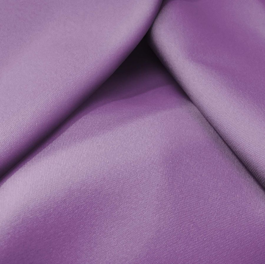 La tela base de este tejido es la Sarga Bielástica - Lisboa, compuesta por 97% POLIÉSTER, 3% ELASTANO, con un gramaje de 209 gr/m2 y un ancho de 150 cm. El color liso impreso es Morado, pomp and power, con un CMYK de 55 67 20 4. Este color nos transmite fuerza y energía, simbolizando la creatividad y el poder. Además, combina perfectamente con colores como el negro, gris, blanco y rosa.