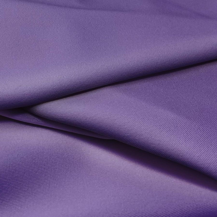 La tela base es la Sarga Bielástica - Lisboa, compuesta por un 97% de POLIÉSTER y un 3% de ELASTANO, con un gramaje de 209 gr/m2 y un ancho de 150cm. El color liso impreso es un Morado Uva de Cyber, cuyo CMYK es de 77 81 21 6. Este color secundario simboliza la creatividad, la originalidad y la imaginación, y técnicamente se compone de una mezcla de tintas cian, magenta, amarillo y negro. Se combina bien con tonos verdes, rosas y neutros para crear una paleta de colores sofisticados y elegantes. Es importante destacar que la tela está impresa con el color liso a una sola cara por impresión digital textil.