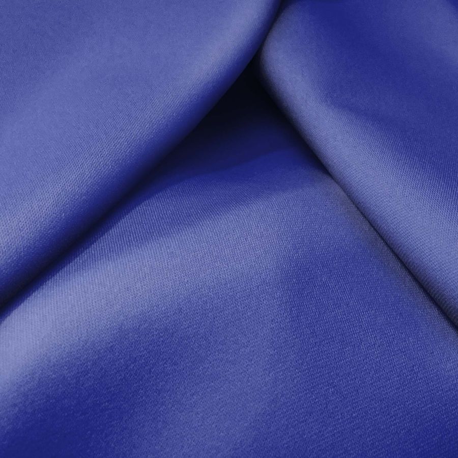 La tela base, una Sarga Bielástica - Lisboa, es una tela resistente y elástica que se compone de un 97% de poliéster y un 3% de elastano. Su gramaje es de 209 gr/m2 y tiene un ancho de 150 cm. El color liso impreso en esta tela es un Morado Violeta de Cobalto con un CMYK de 95 84 9 1. Este color es intenso y vibrante, simbolizando la creatividad y la introspección. Además, se combina muy bien con tonos oscuros como el negro, el gris y el marrón. La tela está impresa con el color liso a una sola cara por impresión digital textil, lo que la hace ideal para proyectos de costura y decoración.
