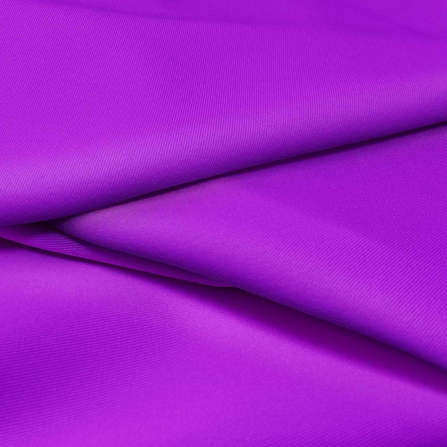 La tela base de este tejido es una Sarga Bielástica - Lisboa, con una composición de 97% poliéster y 3% elastano, lo que le proporciona una elasticidad y una suavidad únicas. Su gramaje es de 209 gr/m2 y su ancho es de 150 cm. El color liso impreso es un tono morado-violeta oscuro, con una mezcla de tinta cian del 70% y tinta magenta del 85%, lo que le aporta una gran intensidad y profundidad. Este color combina perfectamente con otros tonos morados y violetas, así como con tonos grises y blancos.
