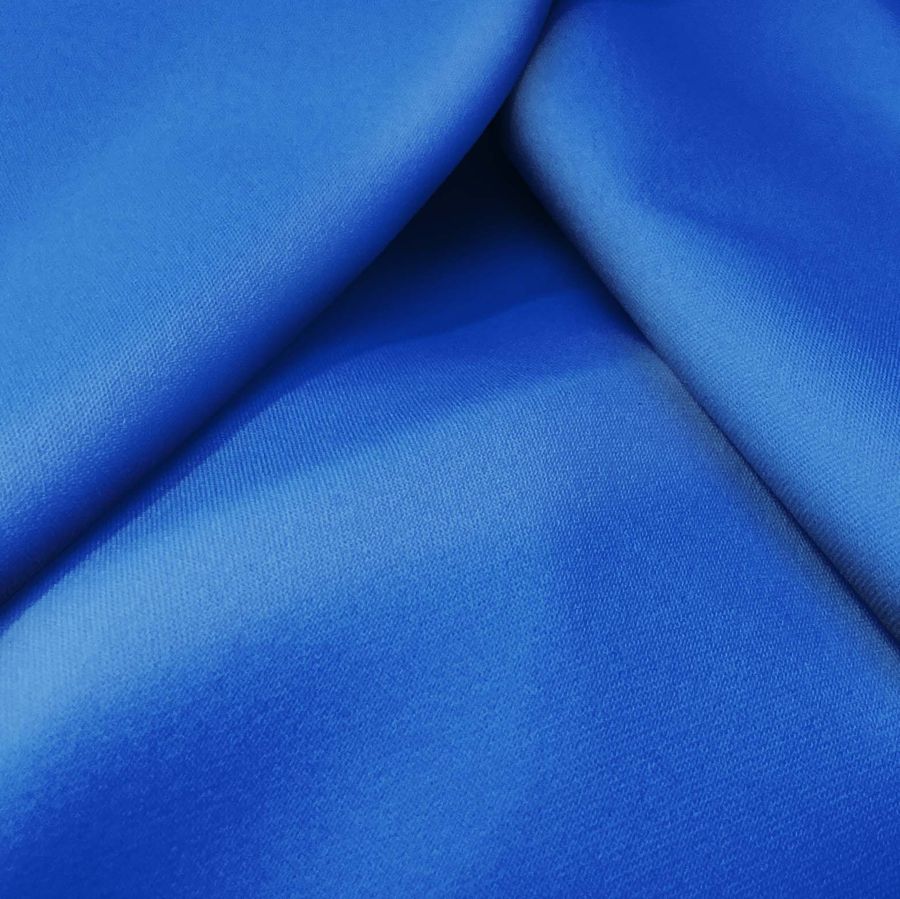 La tela base es la Sarga Bielástica - Lisboa, compuesta por un 97% de poliéster y un 3% de elastano, con un peso de 209 gr/m2 y un ancho de 150 cm. Su color liso impreso es morado zafiro, con una combinación de tintas cian al 91% y magenta al 68%, sin amarillo ni negro, lo que da como resultado un tono intenso y vibrante.