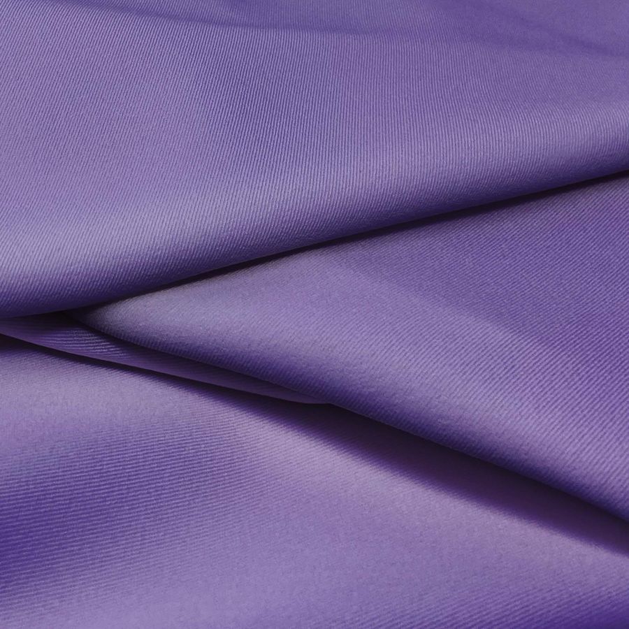 La tela base Sarga Bielástica - Lisboa tiene una composición de 97% POLIÉSTER y 3% ELASTANO, con un gramaje de 209 gr/m2 y un ancho de 150 cm. El color liso impreso es Morado, Violeta Cristal, con un CMYK de 75 77 14 2. Este color transmite la energía creativa, la tranquilidad y la positividad que aporta el violeta, combinado con la elegancia y la sofisticación del morado. El color secundario combina perfectamente con tonos de rosa, gris, azul pálido, verde menta y dorado.