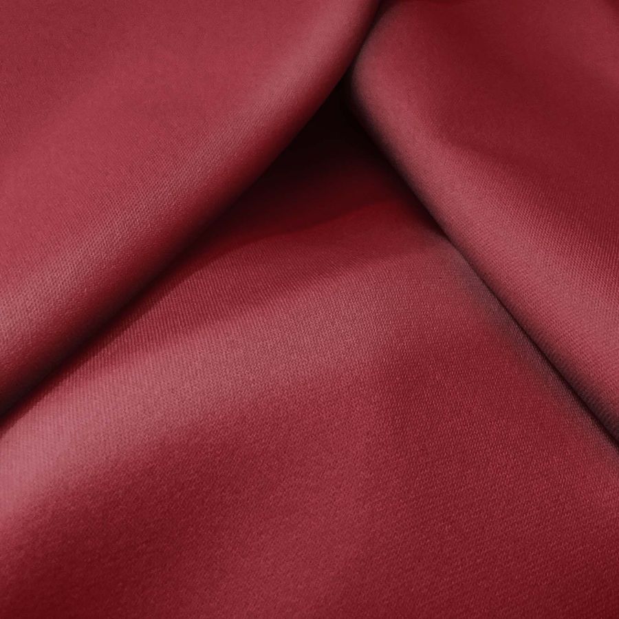 La tela base, Sarga Bielástica - Lisboa, es una tela resistente y elástica de 97% poliéster y 3% elastano con un gramaje de 209 gr/m2 y ancho de 150 cm. El color liso impreso en la tela es Morado-Rojo Púrpura con un CMYK de 32 100 79 46. Este color se asocia con la individualidad, el misterio y la creatividad, y combina bien con tonos tierra, grises y rosados.