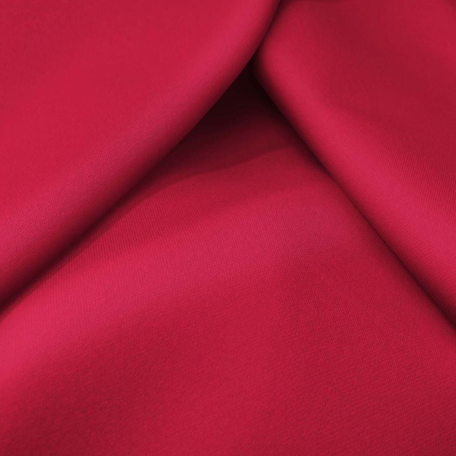 La tela base Sarga Bielástica - Lisboa de 97% poliéster y 3% elastano, con un gramaje de 209 gr/m2 y ancho de 150 cm posee un color liso impreso en tonalidad rojo-burdeos con un CMYK de 16 98 71 6. Este color simboliza la pasión y el carisma, y técnicamente se consigue mediante la combinación de las tintas cian, magenta, amarillo y negra. Se combina especialmente bien con tonos grises, negros y beige. El tejido está impreso con el color liso a una sola cara por impresión digital textil, lo que significa que su impresión es realizada en una cara del tejido base.