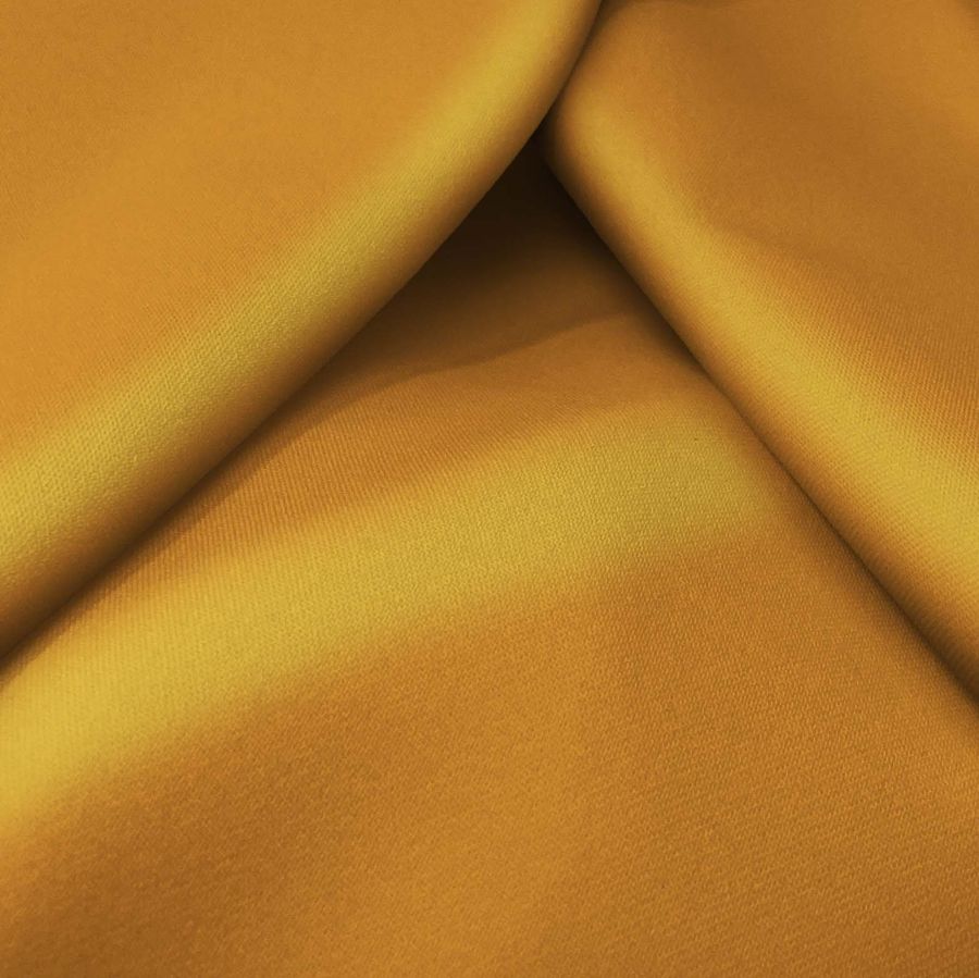 La tela base es la Sarga Bielástica - Lisboa, compuesta por 97% poliéster y 3% elastano, con un gramaje de 209 gr/m2 y un ancho de 150 cm. En cuanto al color liso impreso, se trata de un naranja canela cuyo CMYK es 15 54 90 4. Este color se caracteriza por su apariencia cálida, acogedora y terrosa, reflejo de la tonalidad de la especia a la que hace referencia su nombre. Además, este color aporta un cierto toque de sofisticación y elegancia, especialmente cuando se combina con tonalidades neutras como el beige o el gris.