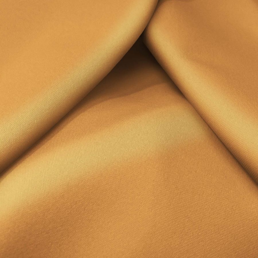 La tela base, Sarga Bielástica-Lisboa, cuenta con una composición de 97% poliéster y 3% elastano, con una textura rugosa y suave al tacto. Su color liso impreso en Mango Tango es una combinación cromática de 0% de tinta cyan, 49% de tinta magenta, 73% de tinta yellow y 0% de tinta black, formando un CMYK de 0 49 73 0. Es un color secundario cálido, vibrante y energético que se fusiona perfectamente con tonalidades neutras como el gris, el blanco y el negro.
