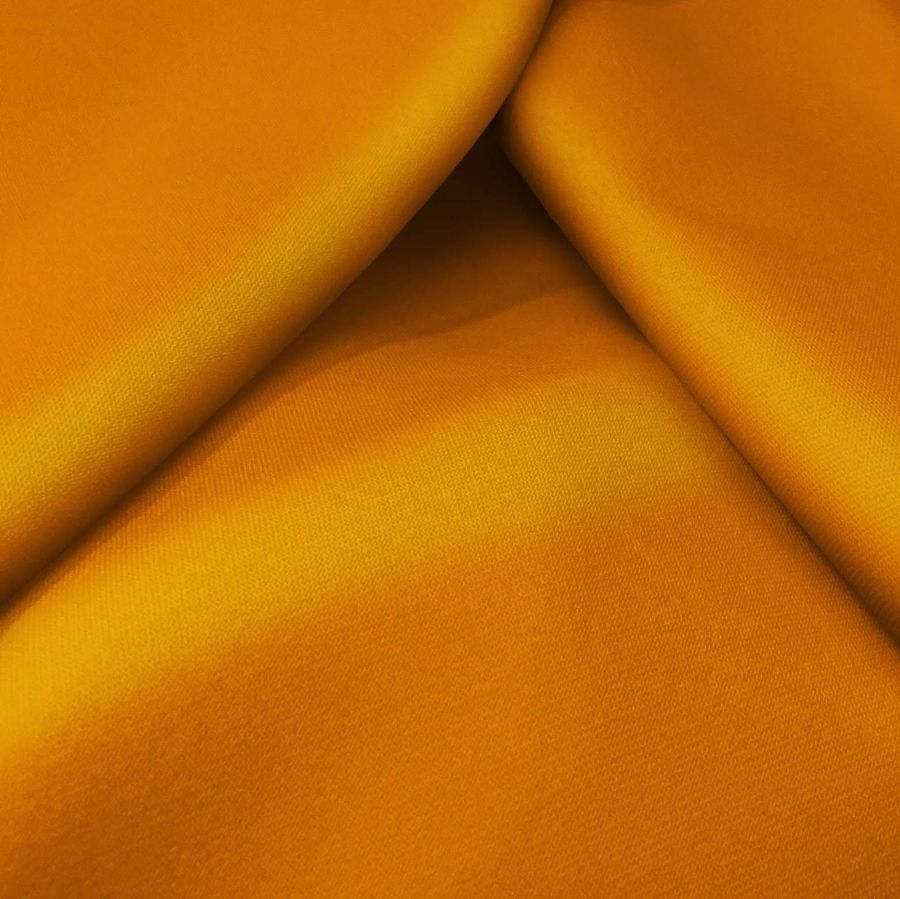 La tela base es la Sarga Bielástica - Lisboa con una composición de 97% POLIÉSTER y 3% ELASTANO, un gramaje de 209 gr/m2 y un ancho de 150 cm. El color liso impreso es Naranja, reflejando un CMYK de 1 65 99 0. Este color representa la fuerza de voluntad y se combina bien con tonos azules y verdes, creando una paleta vibrante y atractiva. El tejido está impreso con el color liso a una sola cara por impresión digital textil.