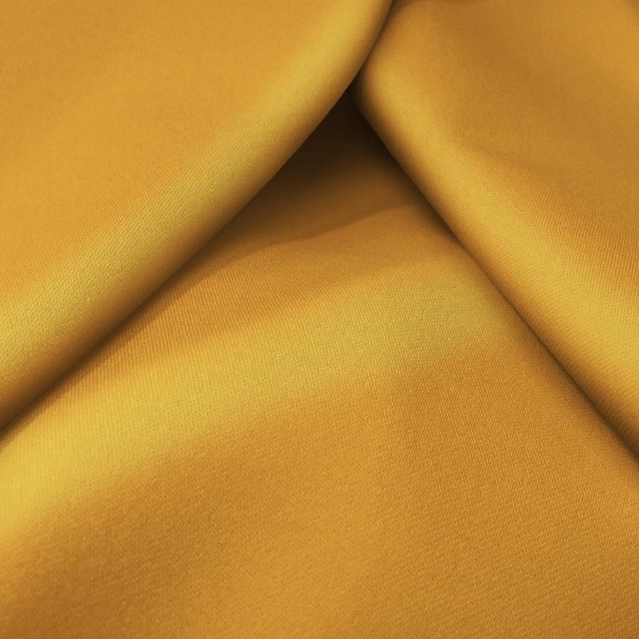 La tela base es la Sarga Bielástica - Lisboa, compuesta por un 97% de poliéster y un 3% de elastano, con un gramaje de 209 gr/m2 y un ancho de 150 cm. El color liso impreso es un naranja Princetone, que se traduce en un CMYK de 4 49 86 0. Este color tiene una tonalidad cálida y vibrante, combinando bien con tonos tierra, verdes y azules. El tejido está impreso con el color liso a una sola cara por impresión digital textil, y no es un tejido tintado sino impreso por una sola cara.
