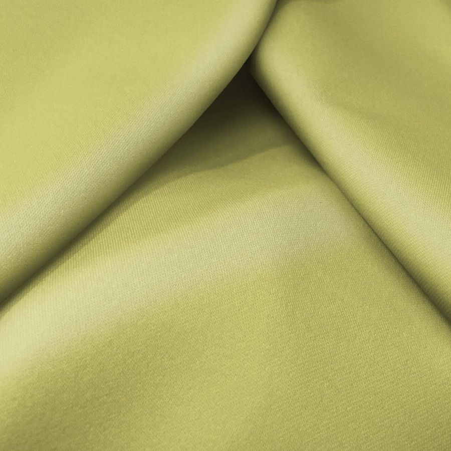 La tela base, Sarga Bielástica - Lisboa, está compuesta por 97% de poliéster y 3% de elastano, y tiene un gramaje de 209 gr/m2, con una anchura de 150 cm. El color liso impreso en ella es amarillo arena, con un CMYK de 24 10 68 0. Este color tiene una connotación cálida y orgánica, reflejando la tierra y la calma, además de asociarse a la sensación de estabilidad y seguridad. Combina perfectamente con una amplia gama de colores como verdes suaves, marrones claros, cremas y tonos beiges.