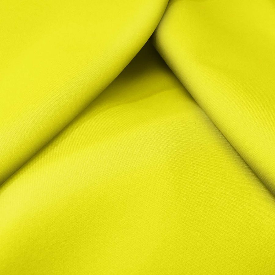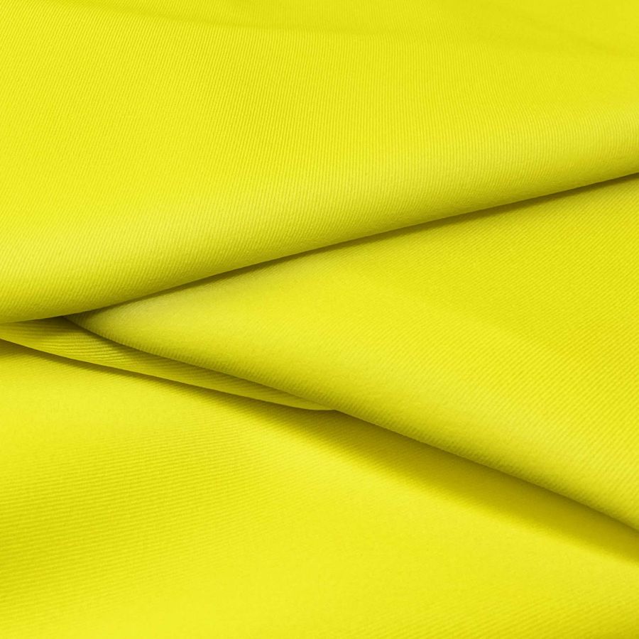 El tejido base de este producto es la Sarga Bielástica - Lisboa, con una composición de 97% Poliéster y 3% Elastano, un gramaje de 209 gr/m2 y un ancho de 150 cm. En cuanto al color liso impreso, este producto presenta un amarillo de cadmio con un CMYK de 8 0 88 0. Esta tonalidad evoca al sol y a la alegría, siendo perfecta para prendas de vestir y accesorios de moda.