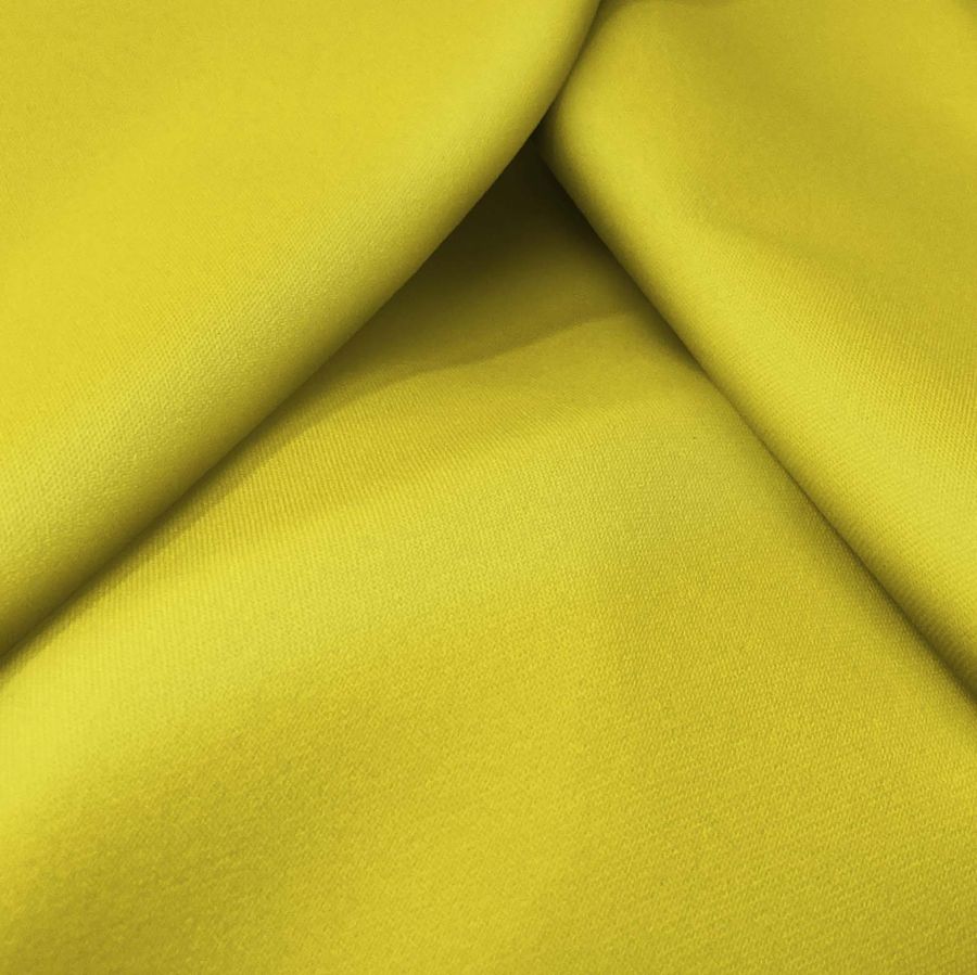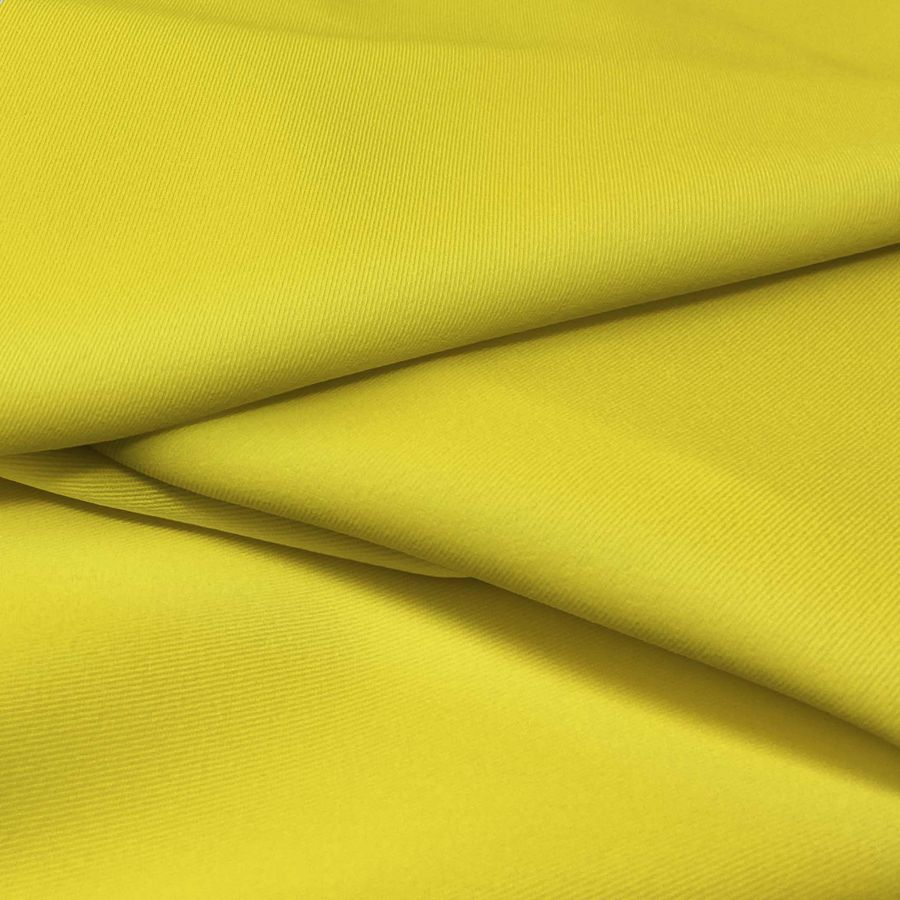 La tela base es la Sarga Bielástica - Lisboa, con un gramaje de 209 gr/m2 y una composición del 97% poliéster y 3% elastano, de un ancho de 150 cm. El color liso impreso es el Amarillo Margarina, con un CMYK de 9 9 87 0. Este color es un tono de amarillo cálido y luminoso, que simboliza la felicidad, la creatividad y el optimismo. Combina especialmente bien con tonos neutros como el beige o el gris, así como con tonalidades más intensas como el azul o el verde.