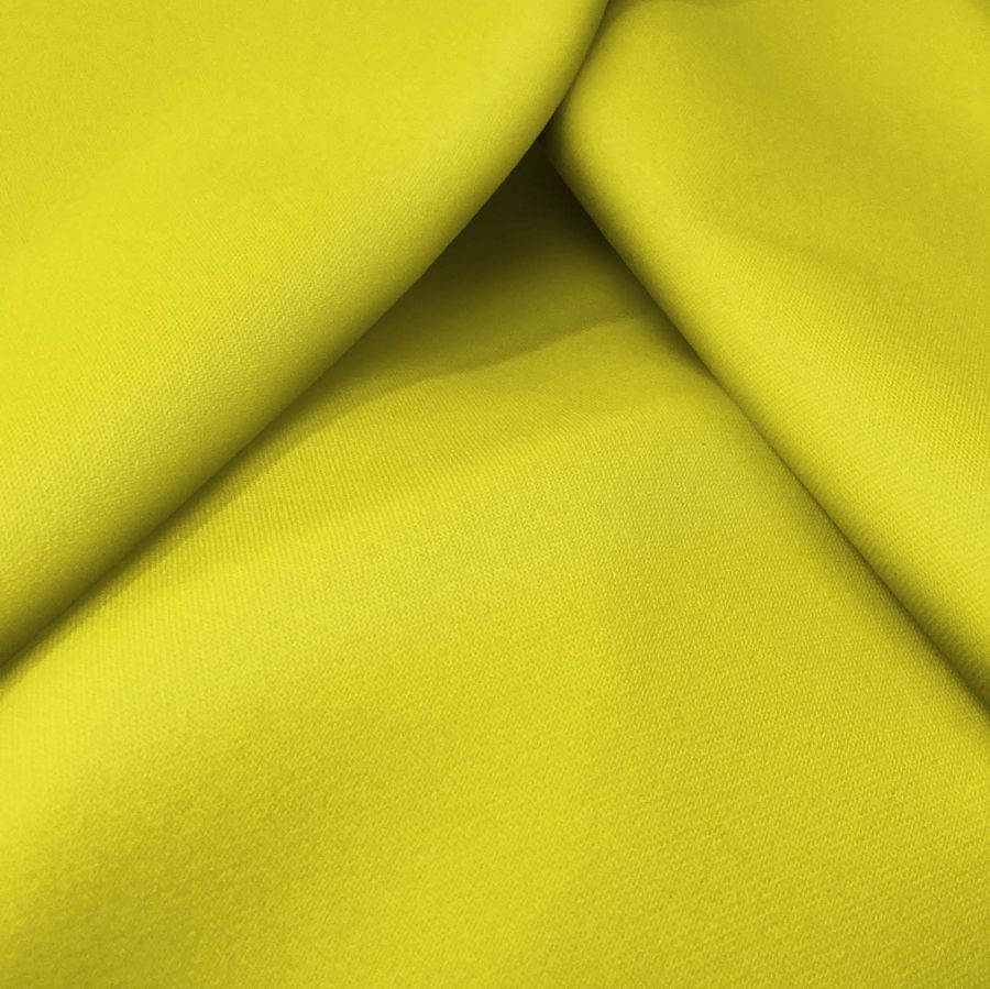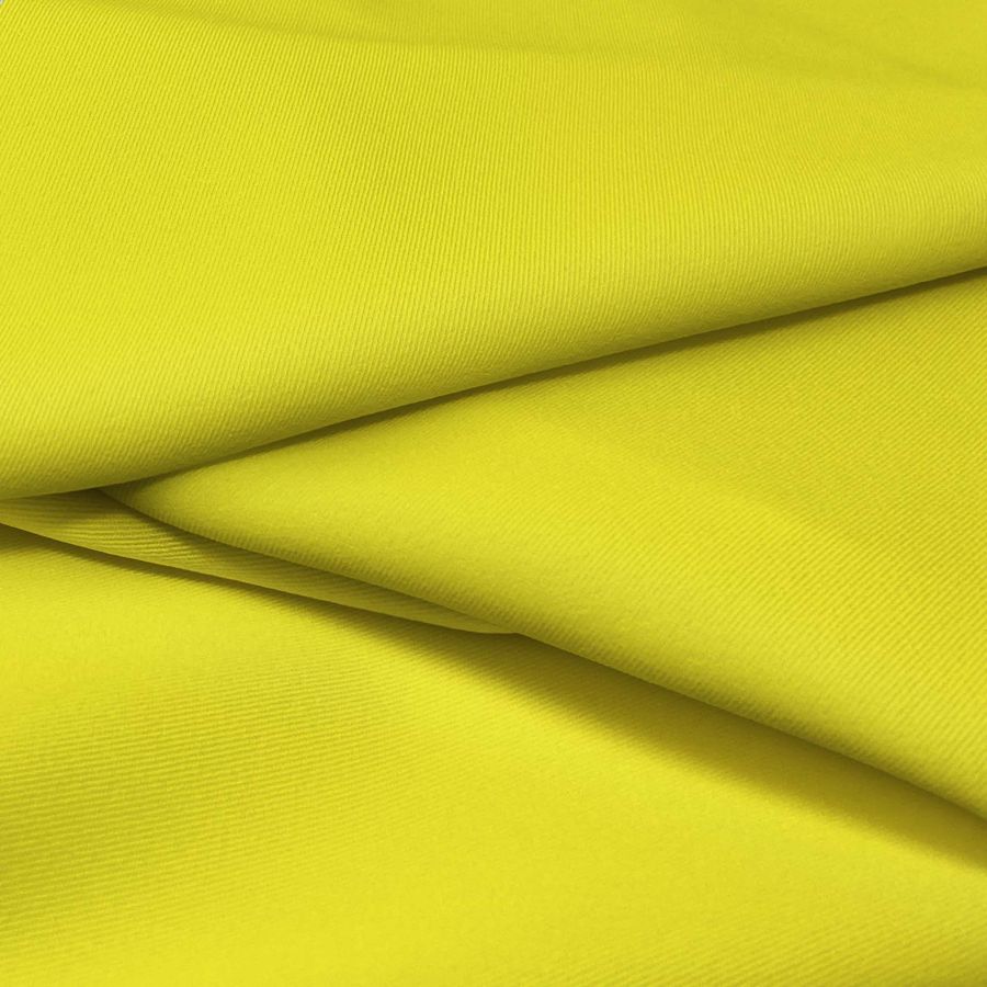 La tela base de esta referencia es la Sarga Bielástica - Lisboa, compuesta por un 97% de poliéster y un 3% de elastano, con un gramaje de 209 gr/m2. El color liso impreso de esta tela es un amarillo neón, con un CMYK de 7 0 85 0, que le confiere un tono vivo y llamativo. Este color combina muy bien con diferentes tonos de grises y blancos, así como con colores vibrantes como el rosa. Es importante destacar que esta tela está impresa con el color liso a una sola cara por impresión digital textil.
