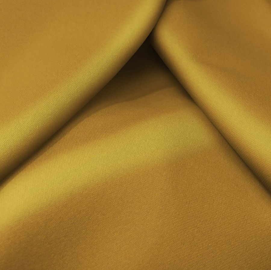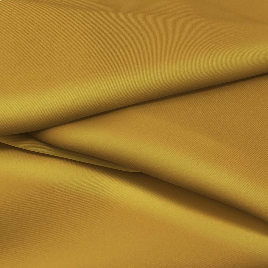 La tela base, Sarga bielástica - Lisboa, es una sarga compuesta por 97% poliéster y 3% elastano, con un gramaje de 209 gr/m2 y un ancho de 150 cm. El color liso impreso en esta tela es amarillo nicotina, con un contenido de CMYK de 25 47 89 16. Este color es un tono amarillo saturado que aporta energía y vitalidad. Combinado con negro y blanco, crea un contraste elegante y sofisticado, mientras que su combinación con tonos beige o arena crea una armonía cálida y natural.