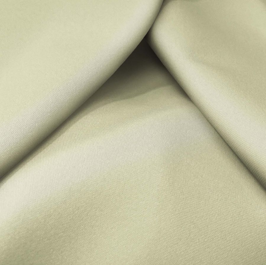 La tela base, Sarga Bielástica - Lisboa, es una tela de sarga compuesta por un 97% de poliéster y un 3% de elastano, con un gramaje de 209 gr/m2 y un ancho de 150 cm. Su color liso impreso es amarillo patata, con una combinación de tintas CMYK de 9, 4, 37, 0, lo que le da un tono suave y elegante, combina muy bien con tonos tierra y grises. Esta tela está impresa a una sola cara por impresión digital textil, lo que le confiere alta calidad y brillo.