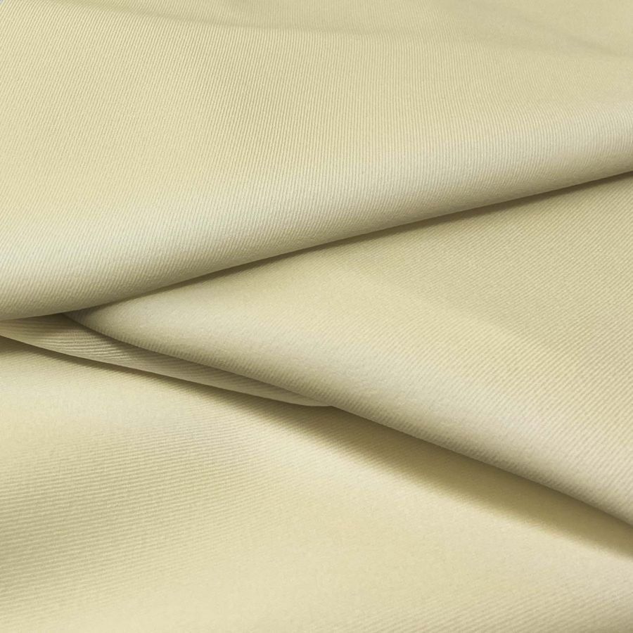 La tela base, Sarga Bielástica - Lisboa, está compuesta por un 97% de poliéster y un 3% de elastano, lo que le confiere una textura rugosa y elástica al tacto, aunque suave y resistente al mismo tiempo. Su gramaje es de 209 g/m2 y su ancho de 150 cm. El color liso impreso en esta tela es un amarillo primaveral con un CMYK de 6 7 41 0, lo que significa que tiene un bajo porcentaje de tinta cyan y magenta pero un alto porcentaje de tinta amarilla. Este color está asociado a la luz del sol, el calor y la alegría. Complementa bien con tonos pastel como el rosa o el lila, así como con colores más fuertes como el naranja o el verde lima.