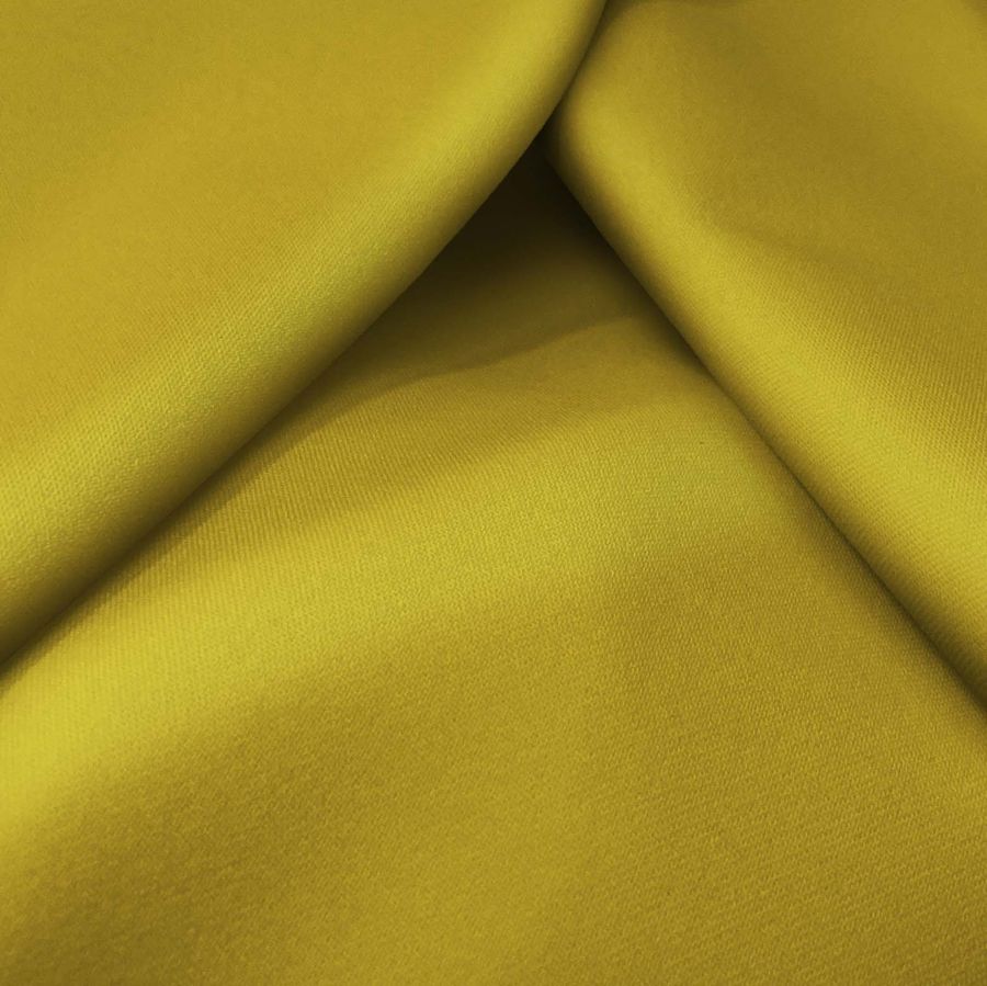 La tela base, Sarga Bielástica - Lisboa, de composición 97% poliéster y 3% elastano, tiene un gramaje de 209 gr/m2 y un ancho de 150 cm. Su color liso impreso es el amarillo sahara con un CMYK de 26 32 93 12. Este color simboliza la energía del sol y la calma del desierto. Su saturación aporta luminosidad y calor al tejido, mientras que su tonalidad suave lo hace elegante, discreto y fácil de combinar. Se puede combinar con marrones, grises, turquesas y verdes, entre otros.