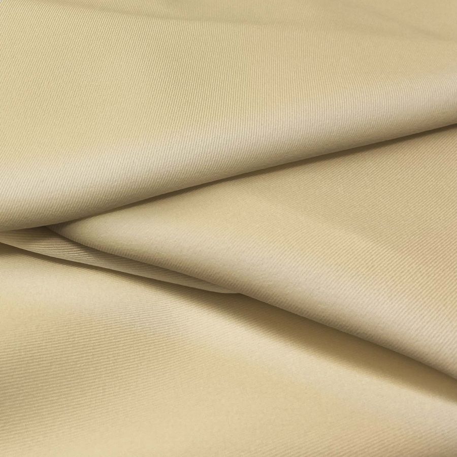 La tela base es la Sarga Bielástica - Lisboa, compuesta por un 97% de poliéster y un 3% de elastano, con un gramaje de 209 gr/m2 y un ancho de 150 cm. El color liso impreso es un Amarillo Chamois, con un CMYK de 9 21 47 1. Este color tiene un tono cálido y suave con matices terrosos, combinando bien con tonos verdosos y rojizos. La tela está impresa a una sola cara por impresión digital textil.