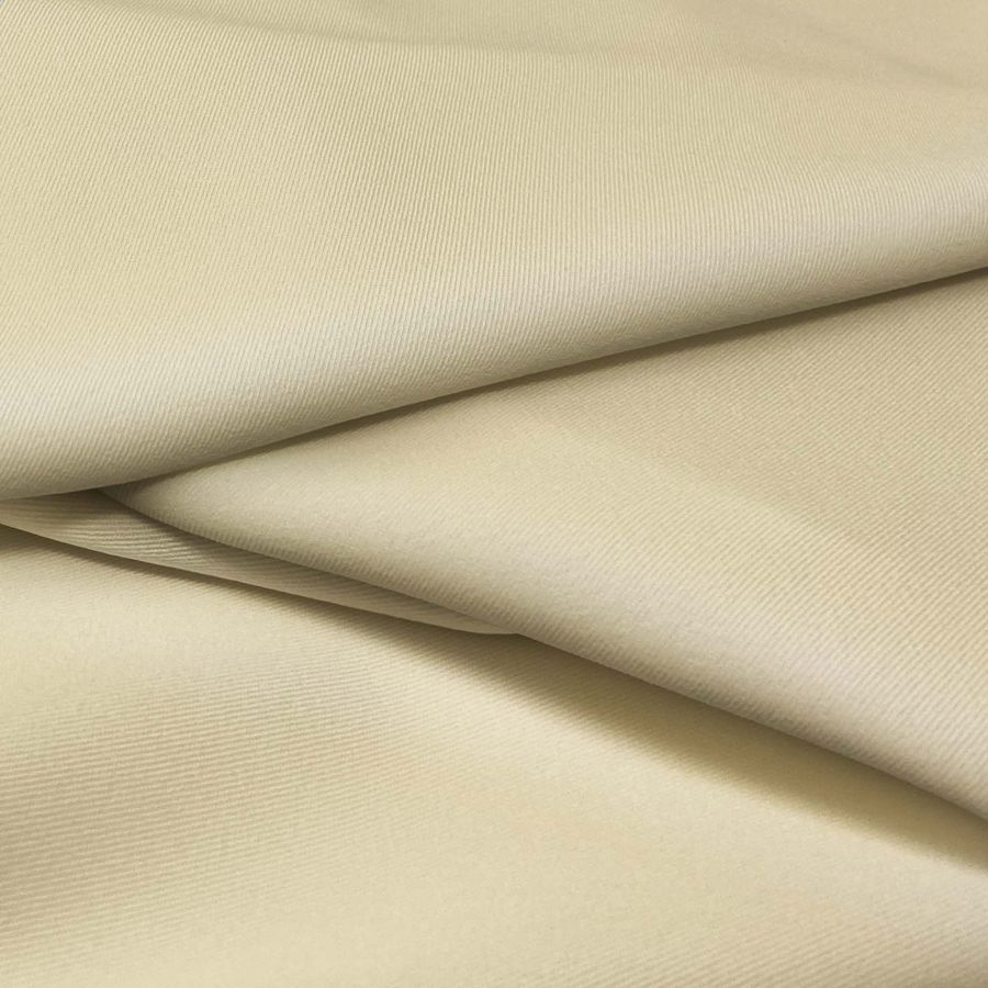 La tela base, Sarga Bielástica - Lisboa, es una sarga compuesta por 97% de poliéster y un 3% de elastano, con un gramaje de 209 gr/m2 y un ancho de 150 cm. Su color liso impreso es amarillo ocre claro, con una mezcla de tinta cyan de 8%, tinta magenta de 13%, tinta yellow de 40% y tinta black de 0%, lo que se traduce en un tono cálido y vibrante. Este color secundario combina particularmente bien con tonos marrones y grises, así como con verdes y naranjas que sean más claros.