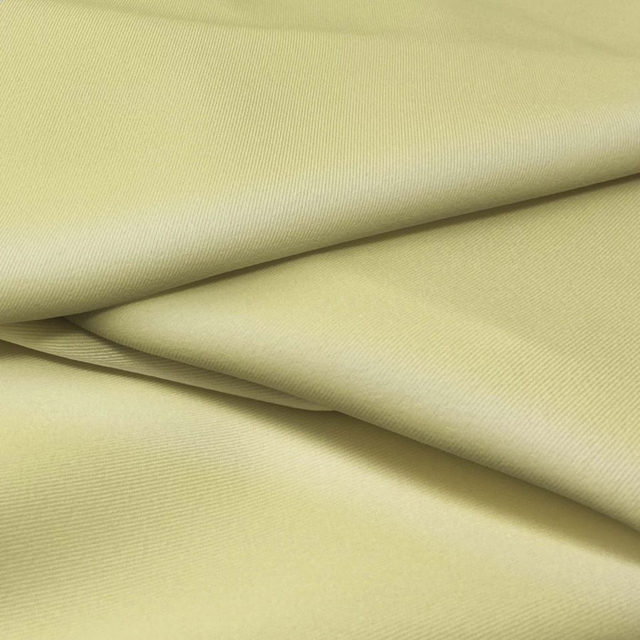 La tela base de este tejido es una sarga bielástica llamada Lisboa, compuesta en un 97% de poliéster y un 3% de elastano, lo que le da un gramaje de 209 gr/m2 y un ancho de 150 cm. Su color liso impreso es un amarillo rubio pajizo, con un contenido de CMYK de 14 8 54 0. En cuanto a este color, se trata de un tono suave y luminoso que simboliza la alegría y la vitalidad, y que combina especialmente bien con tonos cálidos y neutros como el marrón, el beige o el gris.
