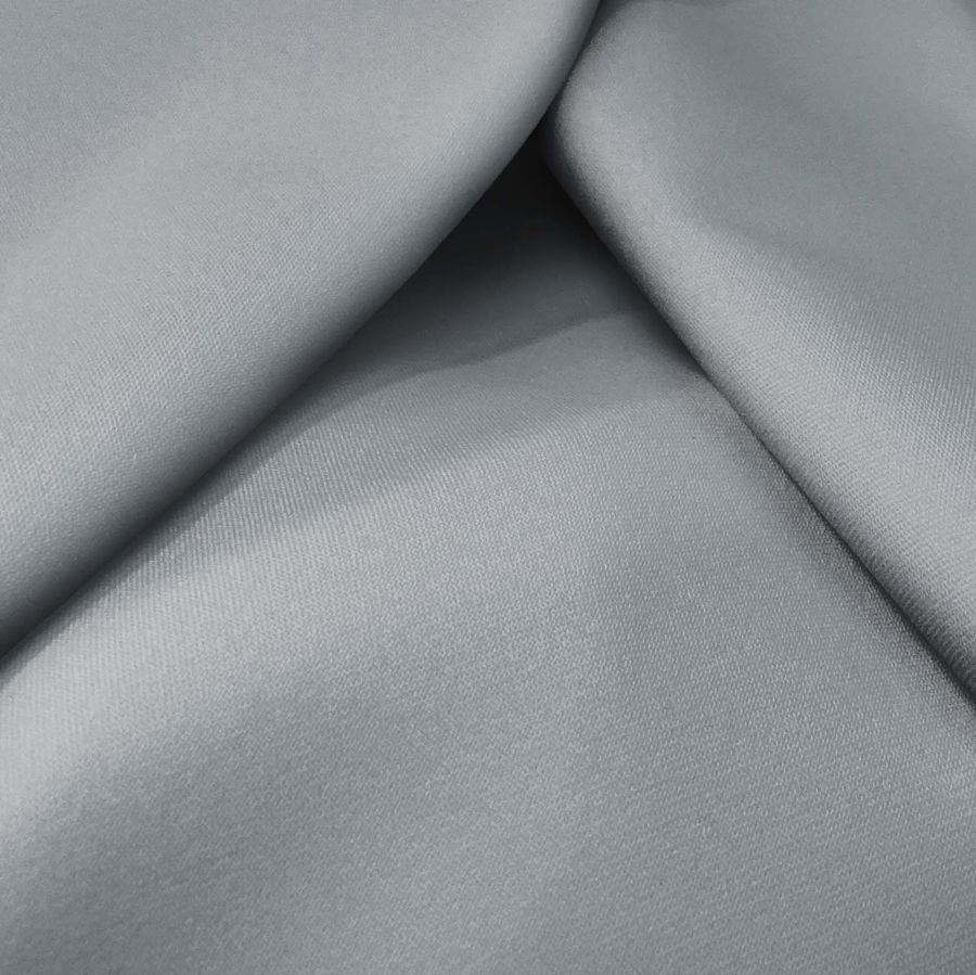La tela base es la Sarga Bielástica - Lisboa, compuesta por un 97% de poliéster y un 3% de elastano. Tiene un gramaje de 209 gr/m2 y un ancho de 150 cm. El color liso impreso es de un tono Gris cadete Maerz-Paul, con un CMYK de 51 37 35 16. Este color es un gris oscuro con una pequeña cantidad de un tono marrón cálido, que combina muy bien con colores como el mostaza, el rosa pálido o el verde oliva.