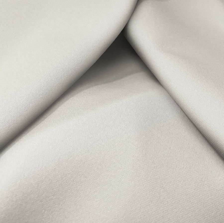 La tela base de este tejido es la Sarga Bielástica - Lisboa, compuesta por un 97% de poliéster y un 3% de elastano, con un gramaje de 209 gr/m2 y un ancho de 150 cm. Su color liso impreso es críptico, con un CMYK de 0 2 12 0, denominado como Blanco, Latte Cósmico. Este color se describe como un tono suave, cálido y elegante con un toque de brillo perlado, que combina perfectamente con colores pastel y tonos tierra.