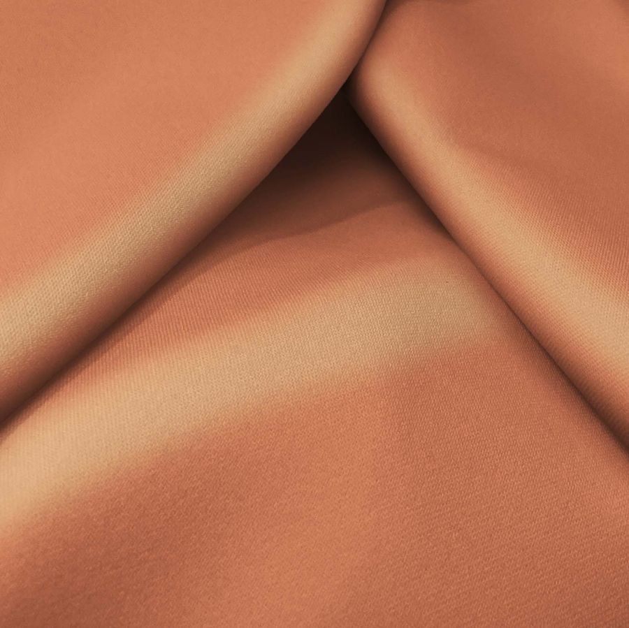 La tela base Sarga Bielástica - Lisboa con composición de 97% poliéster y 3% elastano presenta un gramaje de 209 gr/m2 y un ancho de 150cm. Su color liso impreso, Naranja Cinabrio, tiene una composición CMYK de 8 61 65 1. Este tono transmite una fuerte energía vital y se caracteriza por ser vibrante y ardiente. Combina a la perfección con colores complementarios como el verde, azul y violeta. Es importante destacar que este tejido está impreso con el color liso a una sola cara por impresión digital textil, lo que significa que no es un tejido tintado sino impreso por una sola cara.