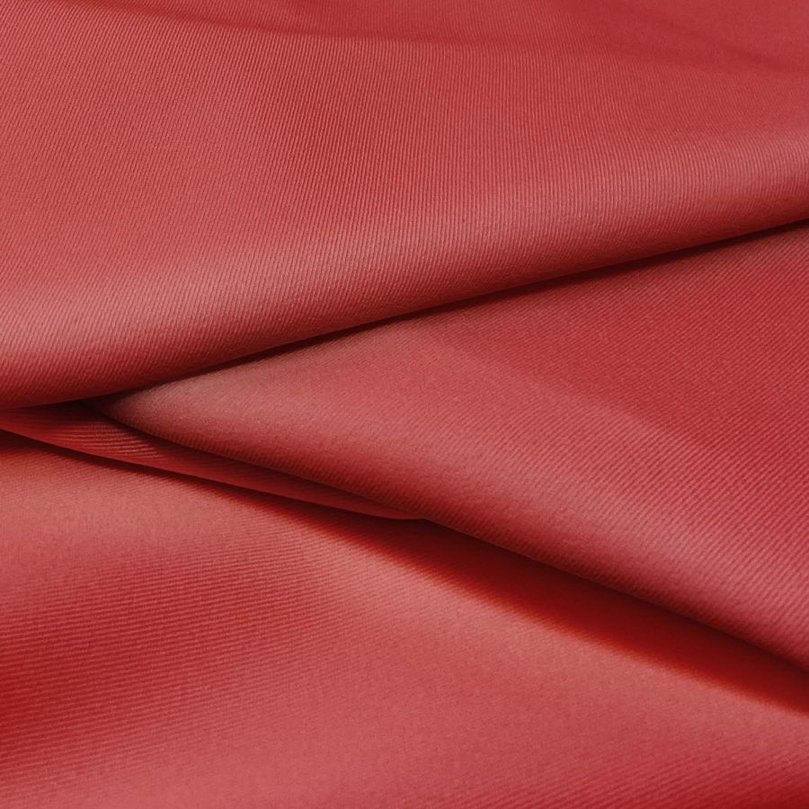 La tela base, Sarga Bielástica - Lisboa, está compuesta de un 97% de poliéster y un 3% de elastano, con un gramaje de 209 gr/m2 y una anchura de 150 cm. El color liso impreso de esta tela es rojo auburn, con una composición de tintas CMYK de 24/93/82/19. Este color secundario, con su tono cálido y terroso, simboliza la pasión y el poder. Además, combina bien con colores como el marrón, el dorado y el naranja.