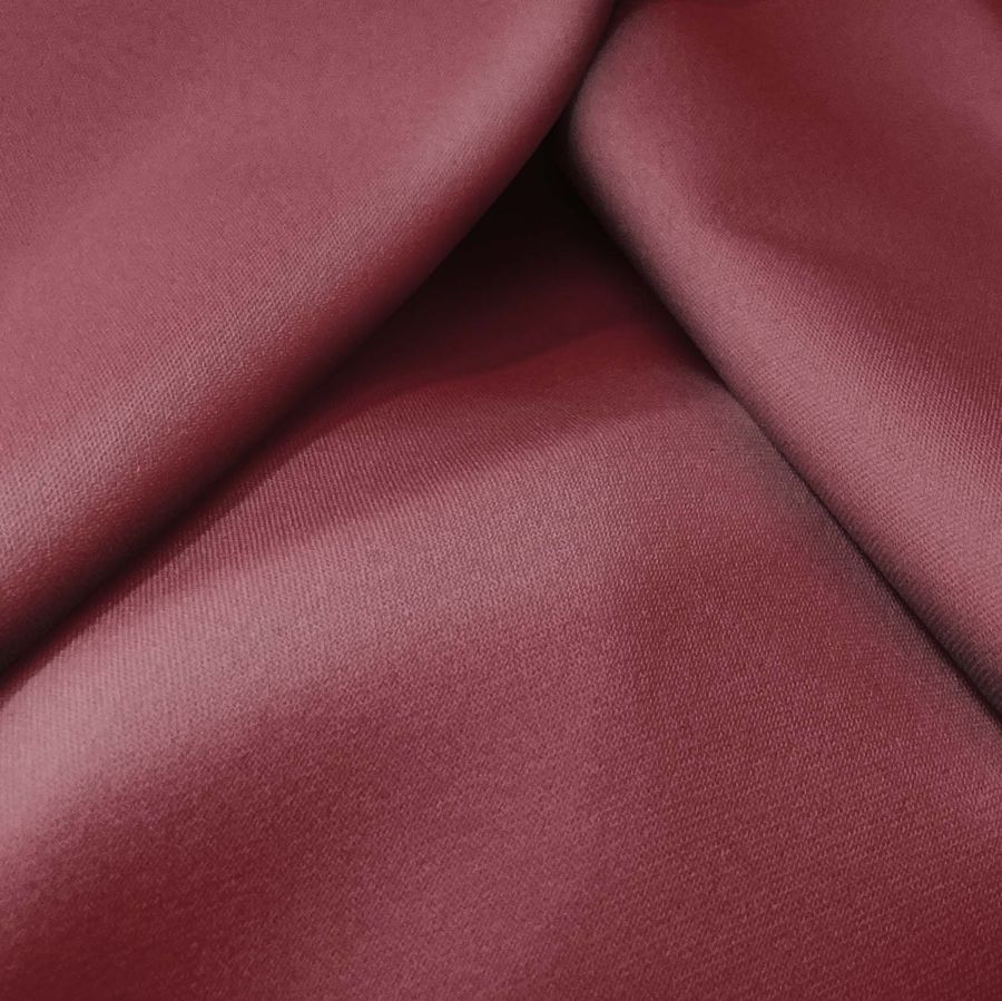 La tela base de esta descripción es la Sarga Bielástica - Lisboa, compuesta por un 97% de poliéster y un 3% de elastano, con un gramaje de 209 gr/m2 y un ancho de 150 cm. El color liso impreso es Rojo Vino, con un CMYK de 34 82 57 47. Este color es un tono oscuro y profundo que evoca la elegancia y la sofisticación. Se combina perfectamente con colores como el blanco, el negro, el dorado y el plateado. El tejido está impreso con el color liso a una sola cara por impresión digital textil.