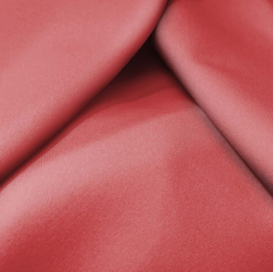 La tela base, Sarga Bielástica - Lisboa, es una tela resistente y elástica compuesta en un 97% de poliéster y un 3% de elastano con un gramaje de 209 gr/m2 y una anchura de 150 cm. El color liso impreso es un vibrante rojo con un destello agridulce, caracterizado por los valores del CMYK 19 78 60 8. Este color es una representación del amor y la pasión, pero también puede evocar emociones fuertes como la ira. Es un tono que se combina excepcionalmente bien con colores neutros como el blanco y el gris, así como con tonos complementarios como el verde oliva y el azul marino.