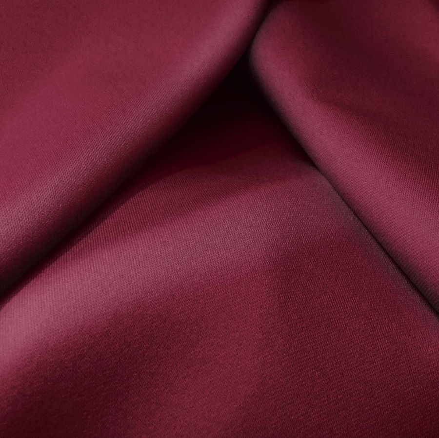La tela base, Sarga Bielástica - Lisboa, es una sarga de 209 gr/m2 compuesta por 97% poliéster y 3% elastano, con un ancho de 150 cm. El color liso impreso en este tejido es Rojo Escarlata Oscuro, con un CMYK de 40 100 65 64. El color secundario es un tono cálido y vibrante que simboliza la energía, la pasión y la fuerza de voluntad. Combina bien con tonos fríos como el azul o el verde oscuro, así como con tonos pastel como el rosa o el beige.