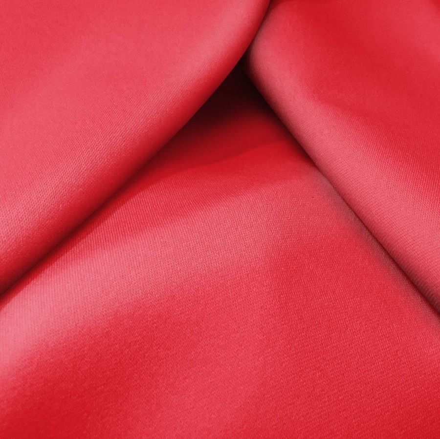 La tela base, Sarga Bielástica - Lisboa, es una sarga de composición 97% POLIÉSTER y 3% ELASTANO con un gramaje de 209 gr/m2 y un ancho de 150 cm. El color liso impreso es Rojo Imperial, representado en CMYK como 0 92 72 0. Este tono ofrece un aspecto vibrante y elegante, un color que transmite fuerza y pasión. El rojo imperial combina perfectamente con tonos neutros como el blanco o el negro, así como con tonos más cálidos como los marrones y los dorados.