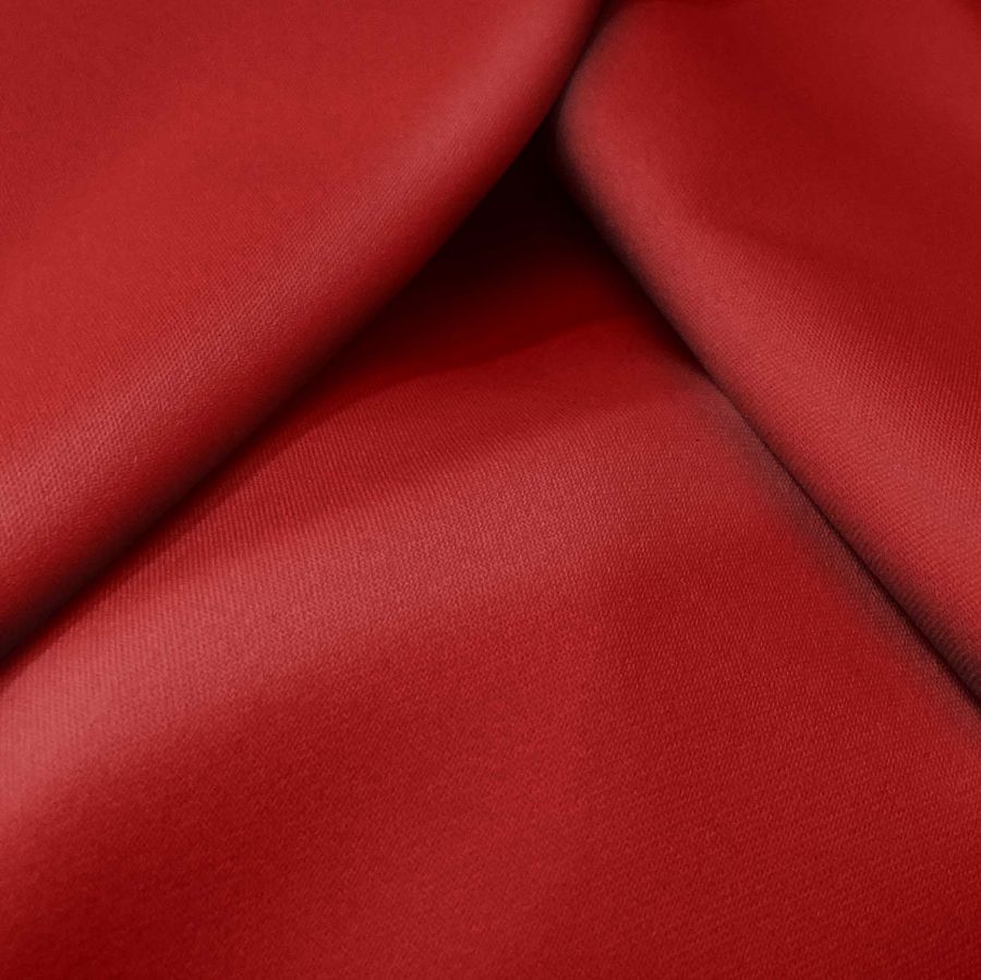 La tela base, Sarga Bielástica - Lisboa, es una sarga compuesta por 97% de poliéster y 3% de elastano, con un gramaje de 209 gr/m2 y un ancho de 150 cm. El color liso impreso en esta tela es Rojo Oscuro, con un CMYK de 27 100 100 34, lo que significa que tiene una alta saturación de magenta, amarillo y negro, y un bajo porcentaje de cian. Este color es símbolo de la pasión, el amor y la fuerza. Se combina perfectamente con tonos pasteles y grises, y también con tonos metálicos y dorados.