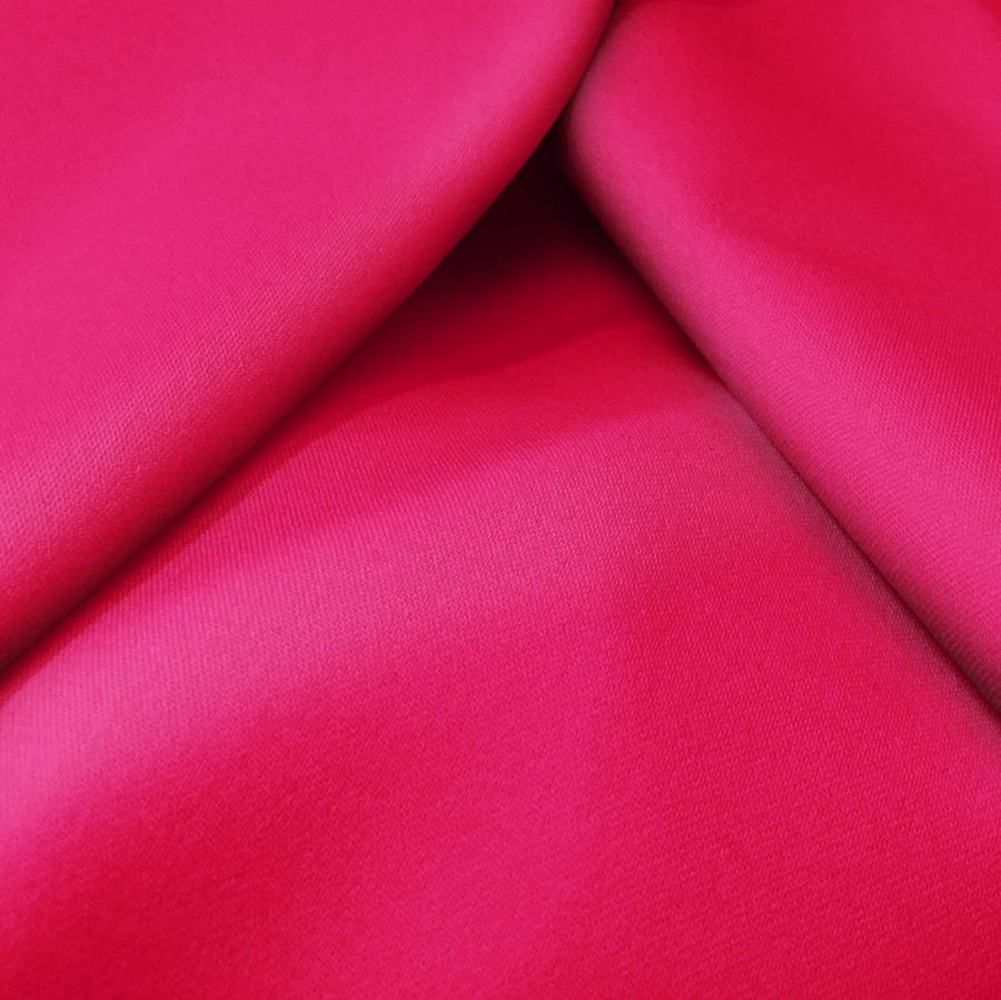La tela base es Sarga Bielástica - Lisboa, compuesta por 97% de poliéster y 3% de elastano, con un gramaje de 209 gr/m2 y un ancho de 150 cm. El color liso impreso es Rojo Purpúreo, con un CMYK de 1 100 57 0. Este color se caracteriza por ser vibrante, intenso y llamativo. Es un color secundario que se obtiene de mezclar el rojo y el morado, por lo que combina bien con tonos rosados, fucsias, amarillos patitos y verdes suaves. Cabe destacar que este tejido está impreso a una sola cara en impresión digital textil.