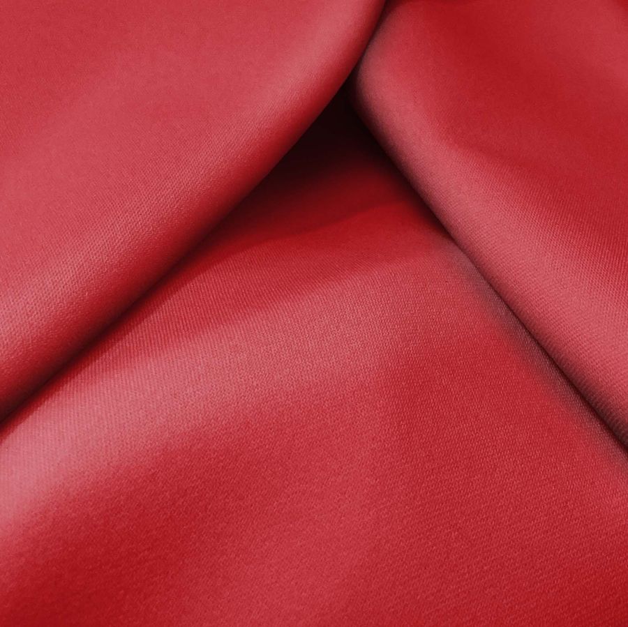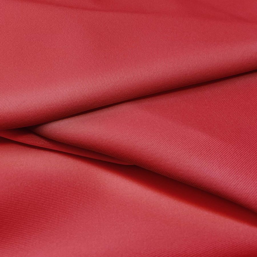 La tela base es la Sarga Bielástica – Lisboa, compuesta por un 97% de poliéster y un 3% de elastano, con un gramaje de 209 gr/m2 y un ancho de 150 cm. El color liso impreso es el Rojo Upsdell, con una combinación CMYK de 22 97 83 15. Este color se caracteriza por ser un tono rojo oscuro y profundo, con un toque de magenta intenso que le da un matiz vibrante y apasionado. Combina perfectamente con tonos tierra y neutros, como el beige y el gris, aportando contraste y elegancia al conjunto.