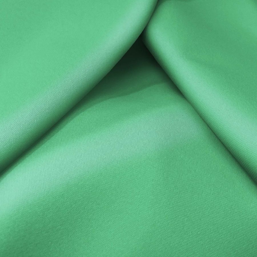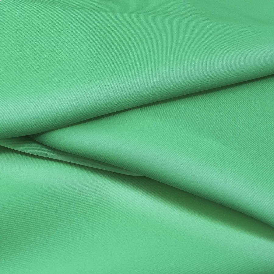 La tela base de este tejido es la Sarga Bielástica - Lisboa, compuesta por un 97% de poliéster y un 3% de elastano, con un gramaje de 209 gr/m2 y un ancho de 150 cm. El color liso impreso que se presenta es un verde esmeralda claro, con un CMYK de 61 0 61 0. Este color simboliza la naturaleza, la frescura y la elegancia, siendo un color que puede combinarse con otros tonos verdes, marrones y dorados.