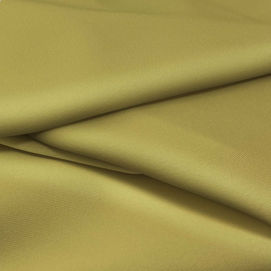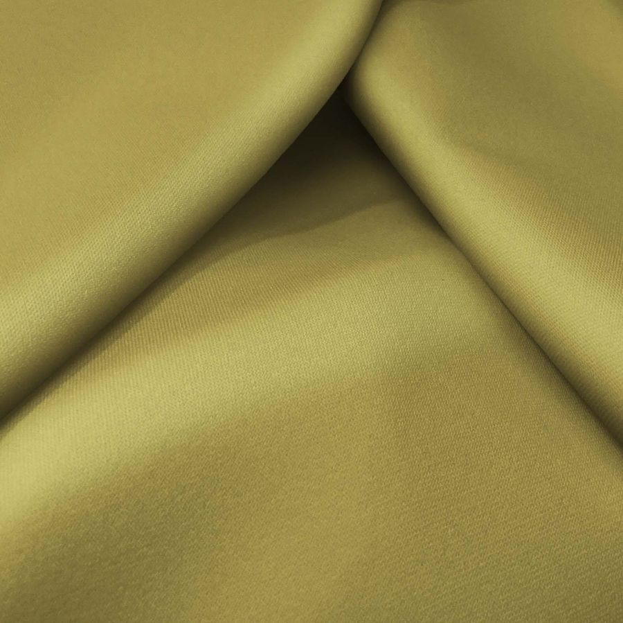 La tela base de este tejido es la sarga bielástica Lisboa, compuesta por un 97% de poliéster y un 3% de elastano, con un gramaje de 209 gr/m2 y un ancho de 150 cm. El color liso impreso es una combinación de verde y latón, con un CMYK de 34 31 76 14. Este color secundario transmite frescura, vitalidad y dinamismo, y combina perfectamente con otros tonos verdes y dorados. Es importante destacar que la tela está impresa a una sola cara por impresión digital textil.