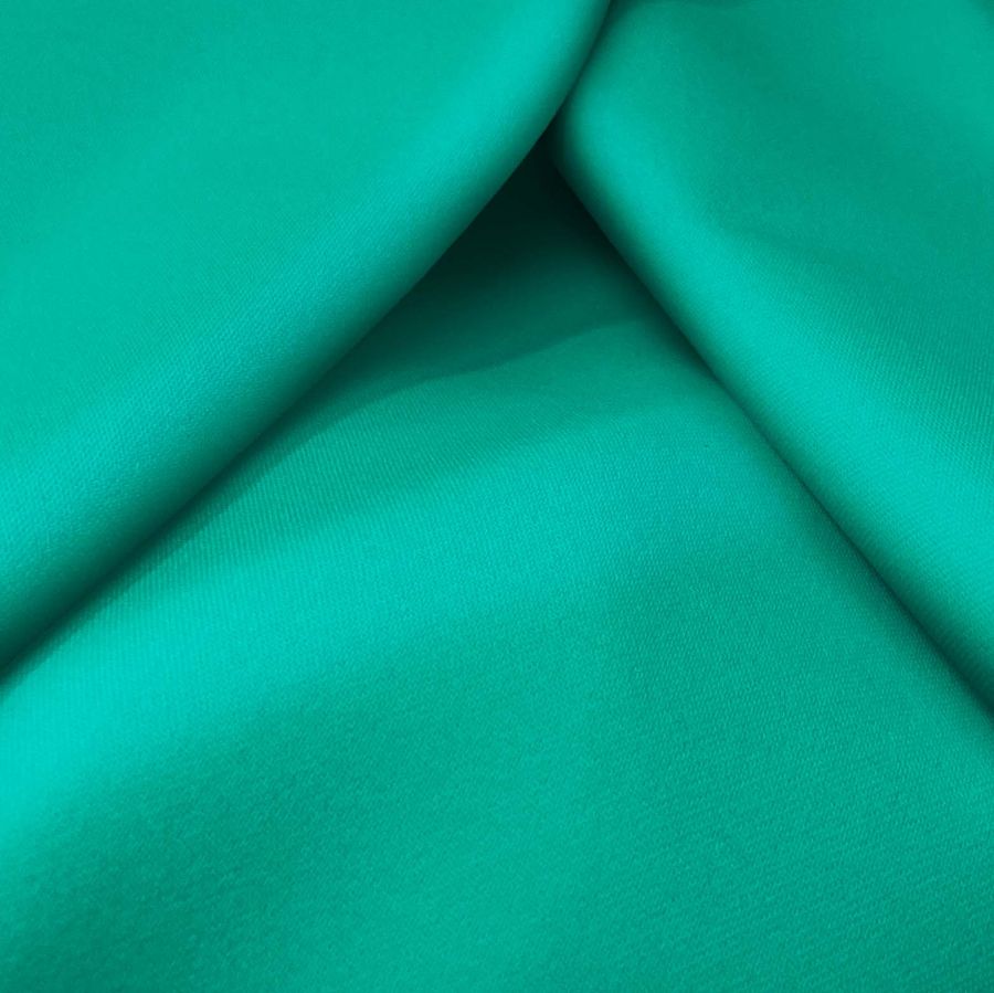 La tela base de este tejido es la Sarga Bielástica - Lisboa, compuesta por un 97% de poliéster y un 3% de elastano, con un gramaje de 209 gr/m2 y un ancho de 150 cm. El color liso impreso es un verde intenso que recuerda al mar profundo, con un CMYK de 74-0-52-0. Este color simboliza la tranquilidad y la serenidad que podemos encontrar en el fondo del mar.