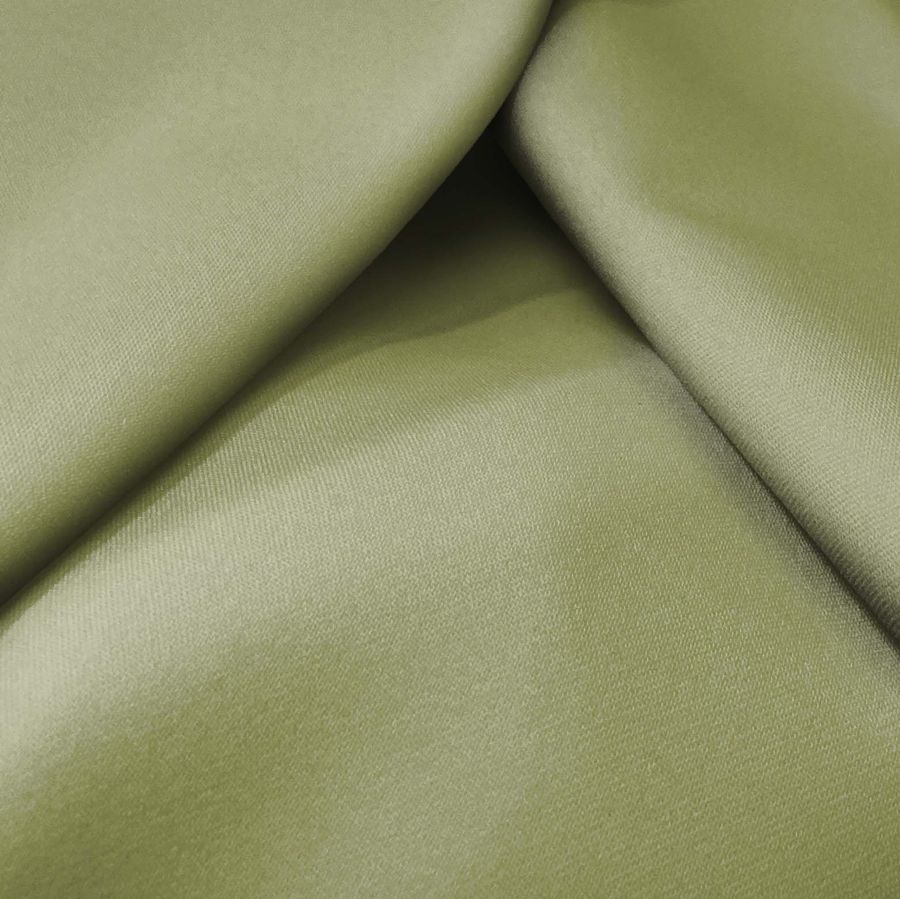 La tela base es la Sarga Bielástica – Lisboa, compuesta por un 97% de poliéster y un 3% de elastano, con un gramaje de 209 gr/m2 y un ancho de 150 cm. Su color liso impreso es un verde oliva con un CMYK de 49 33 67 17. Un color que simboliza la naturaleza, la paz y la estabilidad, y que combina perfectamente con tonos tostados y tierra.