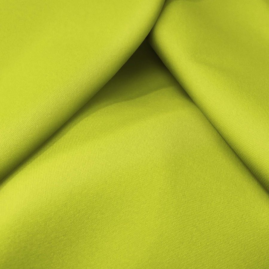 Este color simboliza la naturaleza y la renovación, transmitiendo una sensación de frescura y vitalidad que lo hace ideal para ser utilizado en prendas de vestir y accesorios, especialmente en la temporada de primavera-verano. La textura de la tela es suave y elástica, lo que la hace perfecta para prendas ajustadas al cuerpo.