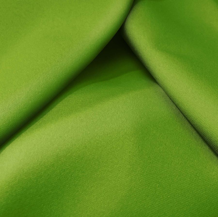 La tela base es Sarga Bielástica - Lisboa, compuesta por 97% de poliéster y 3% de elastano, con un gramaje de 209 gr/m2 y un ancho de 150 cm. El color liso impreso es verde aguacate, con un CMYK de 70 27 100 13. Este color transmite una sensación de frescura y vitalidad, perfecto para dar una nota de color a cualquier prenda o accesorio. Combina especialmente bien con tonos neutros y naturales como blanco, beige o marrón, así como con colores más intensos como fucsia o naranja.