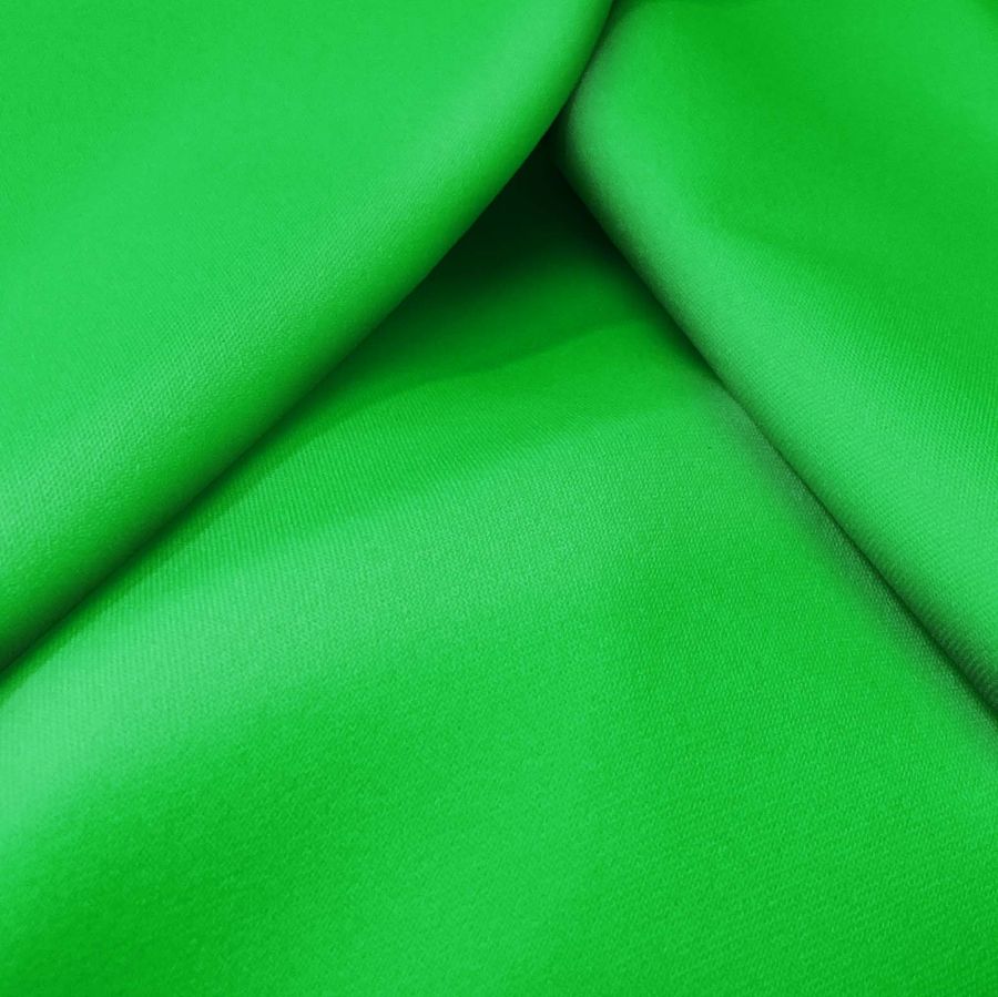 La tela base, Sarga Bielástica - Lisboa, tiene una composición de 97% poliéster y 3% elastano con un gramaje de 209 gr/m2 y un ancho de 150 cm. Su color liso impreso mediante tecnología de sublimación es un vibrante verde brillante, con una mezcla de tinta cyan y tinta yellow en su CMYK de 75 0 100 0. Este color simboliza la vida, el crecimiento y la armonía natural, y combina especialmente bien con tonos neutros como blancos, grises y negros, así como con tonos tierra y madera.