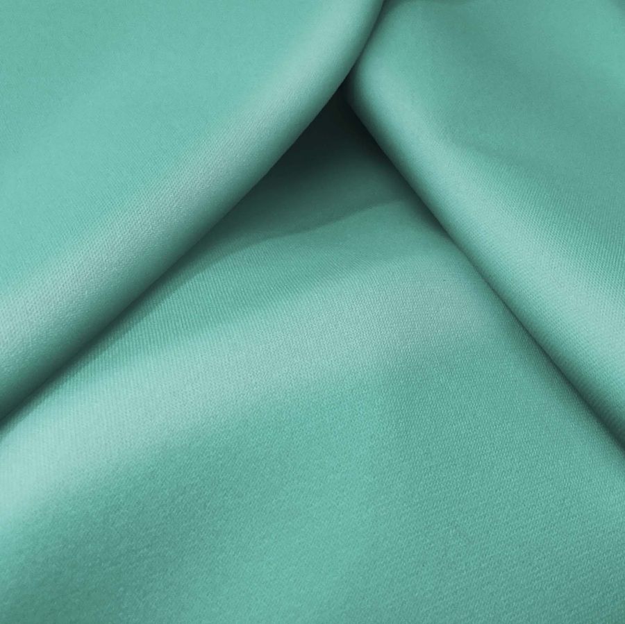 La tela base de este tejido es la Sarga Bielástica - Lisboa, compuesta por un 97% de poliéster y un 3% de elastano con un gramaje de 209 gr/m2. El color liso impreso es verde cardenillo, con una combinación de tintas CMYK de 59 0 39 0. Este color simboliza la naturaleza y la tranquilidad, pero técnicamente también es interesante por su capacidad para combinar con tonos neutros y pastel.
