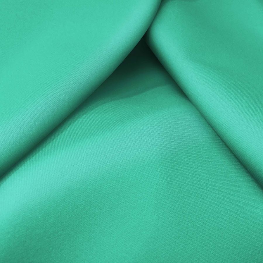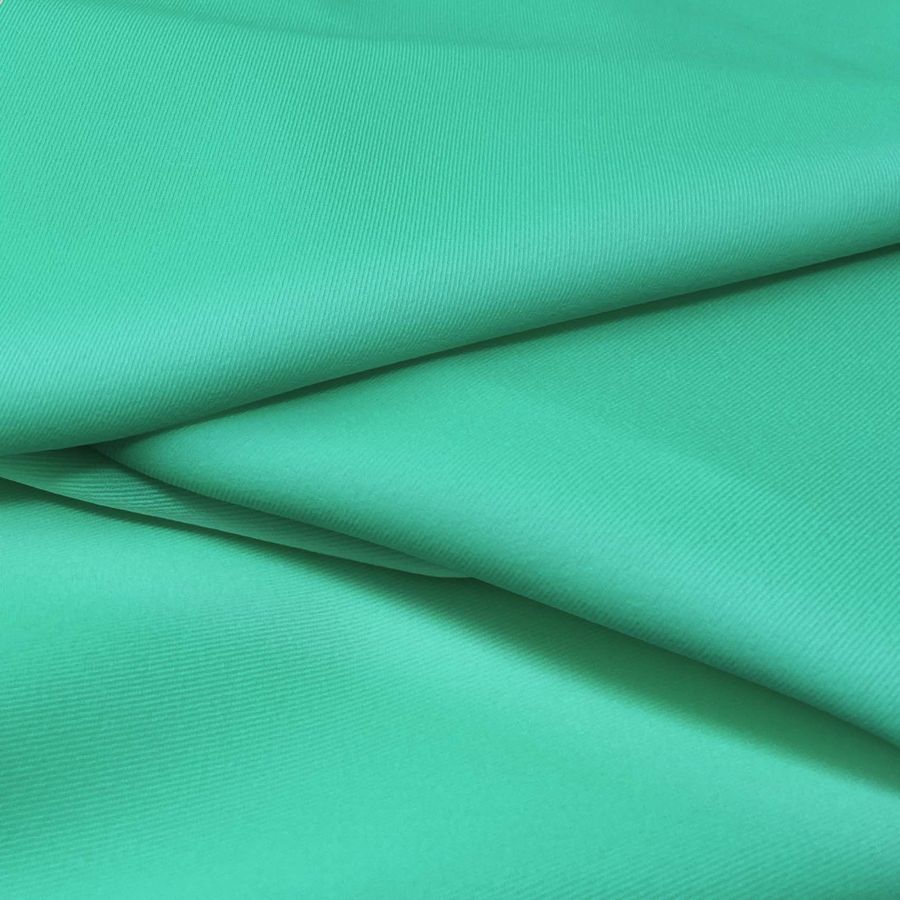 La tela base Sarga Bielástica - Lisboa es una tela de composición 97% poliéster y 3% elastano con un gramaje de 209 gr/m2 y un ancho de 150 cm. El color liso impreso en esta tela es el Verde Eucalipto, que se obtiene a través de la técnica de sublimación con una combinación CMYK de 63-0-48-0.
