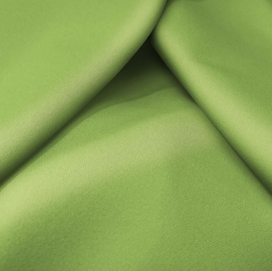La tela base de este artículo es una sarga bielástica llamada Lisboa, compuesta por un 97% de poliéster y un 3% de elastano, con un gramaje de 209 gr/m2 y una anchura de 150 cm. Además, su cuidado debe realizarse a temperaturas máximas de 30°C, siendo apropiado para la limpieza en seco salvo el uso de tricloroetileno. Por otro lado, el color liso impreso es el Verde Lago, cuyo CMYK es de 49 7 78 0. Este color secundario es un tono verdoso, reflejando la naturaleza, con cierto toque turquesa, lo que da sensación de frescura y serenidad. Este color combina perfectamente con tonalidades más naturales como blancos, sutiles tonos vainilla o beige.