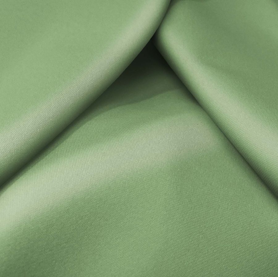 La tela base es la Sarga Bielástica - Lisboa, compuesta por un 97% de poliéster y un 3% de elastano, con un gramaje de 209 gr/m2 y un ancho de 150 cm. Su color liso impreso es verde pálido, con un CMYK de 53 17 63 2. Este color evoca la estabilidad y la esperanza, y simboliza la naturaleza y la energía. El verde pálido es un color fresco y relajante, que combina bien con otros tonos de verde, beige y blanco. La tela está impresa con este color a una sola cara por impresión digital textil.