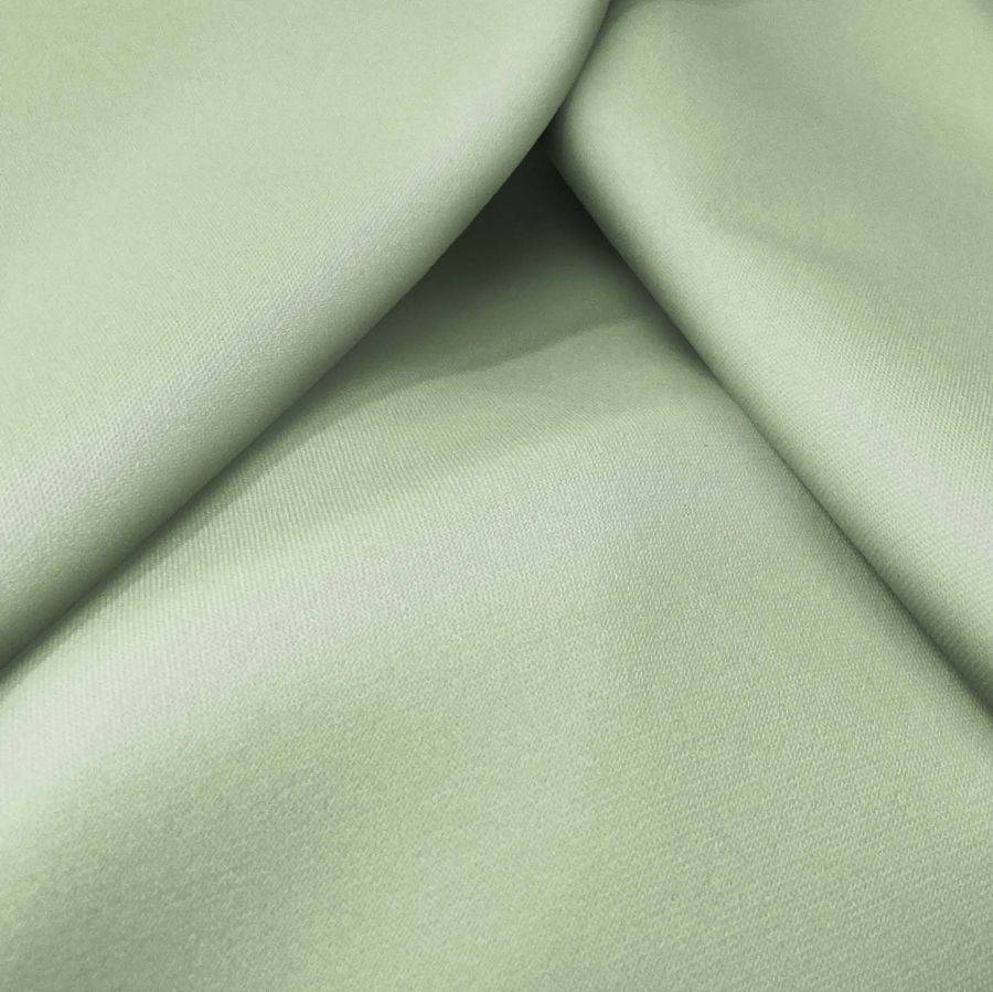 La tela base de este tejido es la Sarga Bielástica - Lisboa, una sarga compuesta por 97% de poliéster y 3% de elastano, con un gramaje de 209 gr/m2 y un ancho de 150cm. Su color liso impreso es de un verde pastel compuesto por 28% de tinta cian y 40% de tinta amarilla en su CMYK. Este color transmite frescura y tranquilidad, y es ideal para usar en prendas de verano y decoración de interiores. El verde pastel combina perfectamente con los tonos de blanco, beige, gris y lila.
